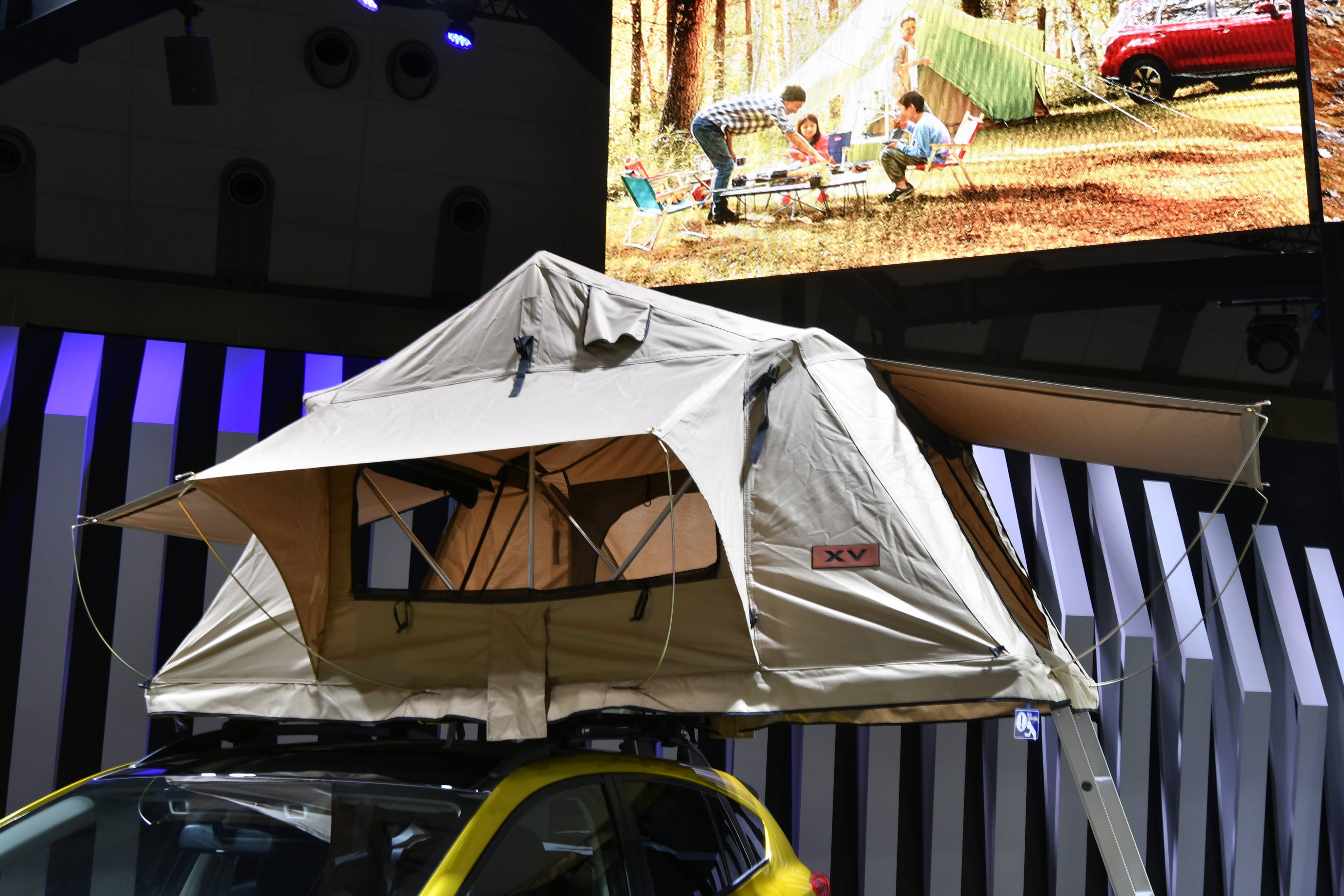こうした特別装備もさることながら、会場ではルーフ上にテントを設営するなど、遊び心あふれる演出も。「SUVは使ってナンボ」、「SUVは外で楽しんでこそ」という提案ですが、そんな使い方がしっかり板に付いているのも、XVが本格SUVだからかもしれません。