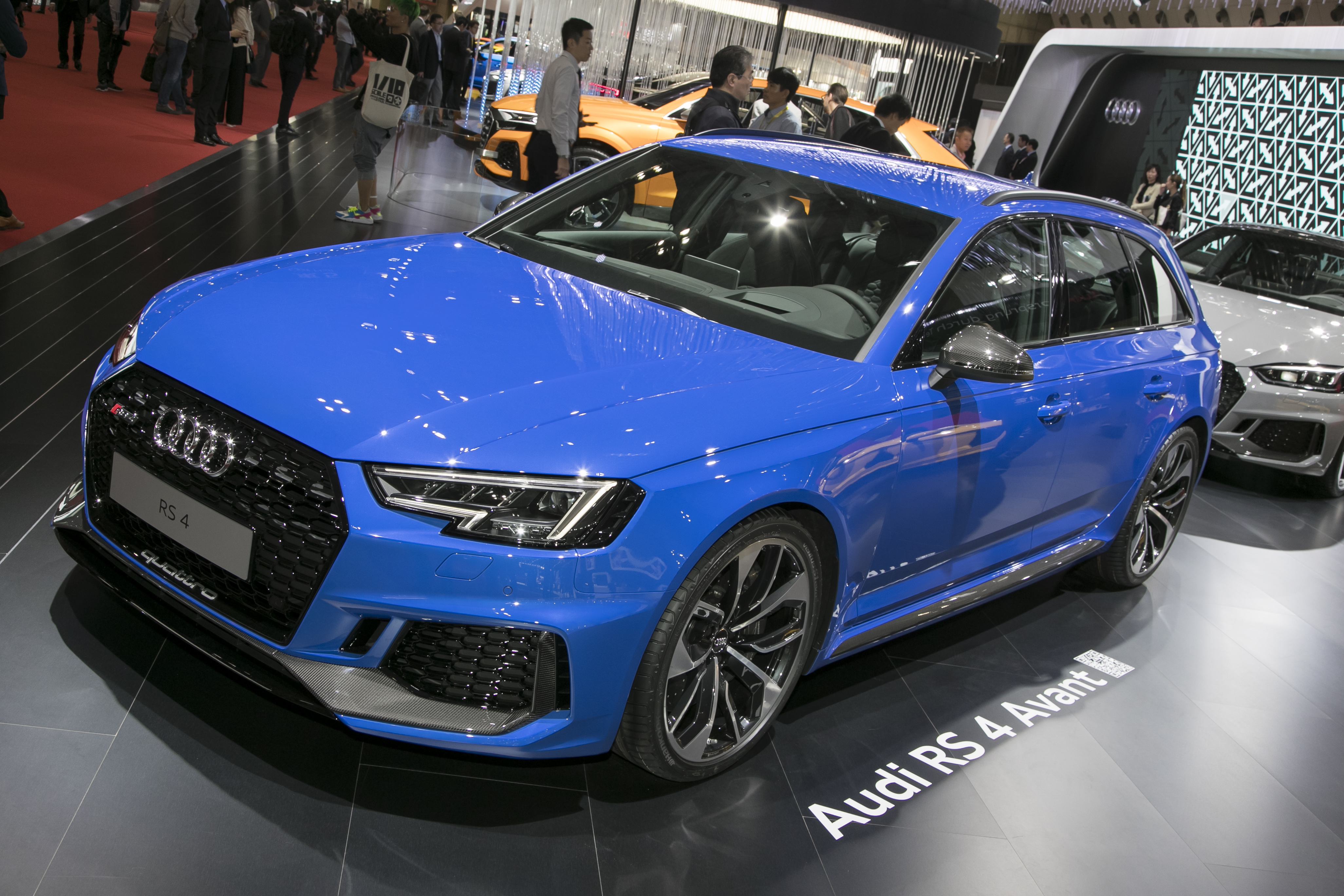 アウディブースにおける、もうひとつの見どころとしてご紹介したいのが、新型「RS4 アバント」。どうしても“近未来推し!”となりがちなモーターショーですが、アウディはハイパフォーマンスモデルも忘れることなく出展車リストに加えてきました。