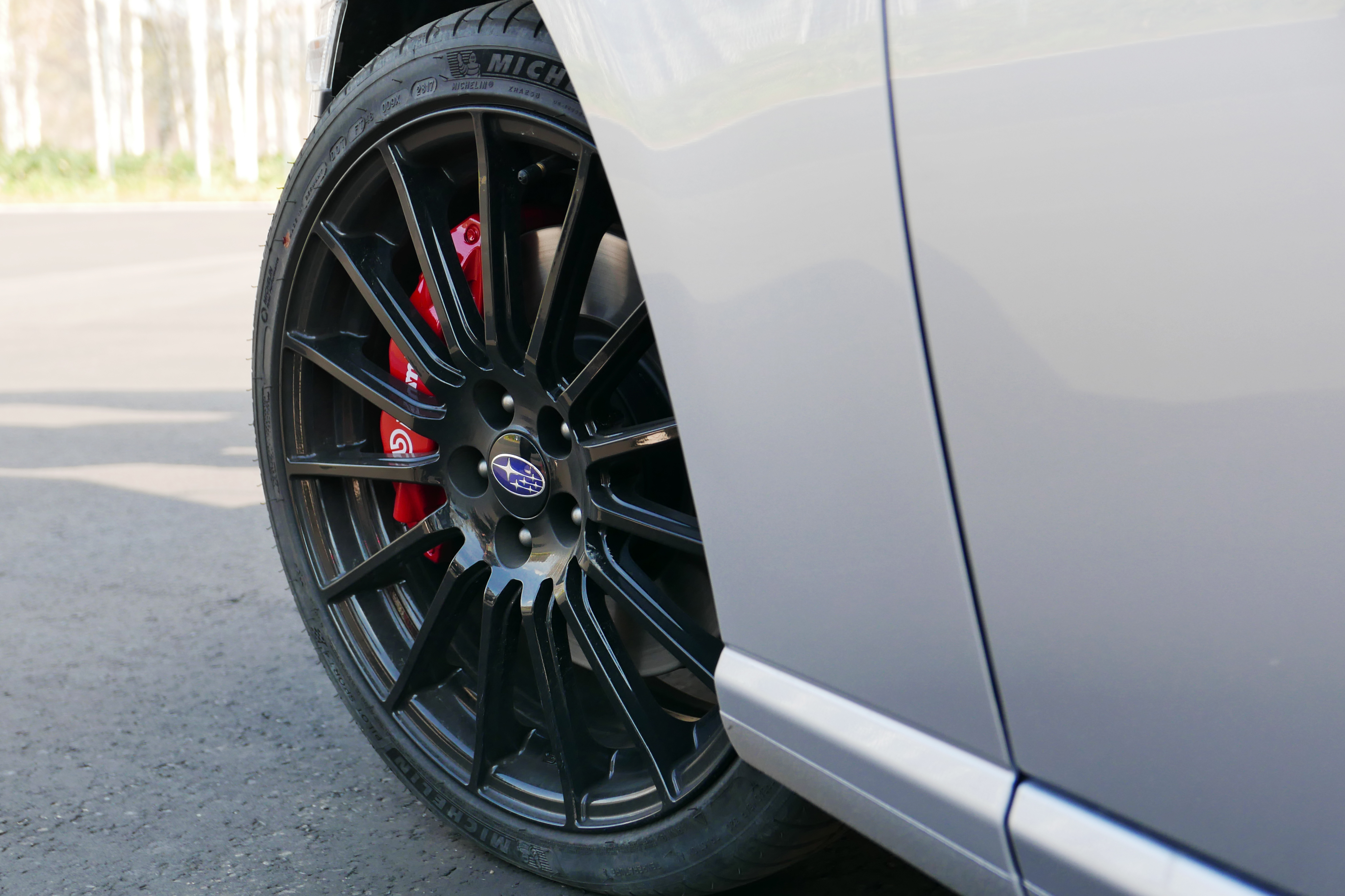 さらなるハンドリング性能を身につけるため、ドイツの名門・ザックス製のダンパーを組み合わせたSTIチューニングのサスペンションに始まり、“フレキシブルVバー”や“フレキシブルドロースティフナー”を装着。足元は、ハイグリップながら乗り心地にも優れる18インチのミシュラン「パイロットスポーツ4」に、STIスポーツ専用のアルミホイールを組み合わせて履いている。