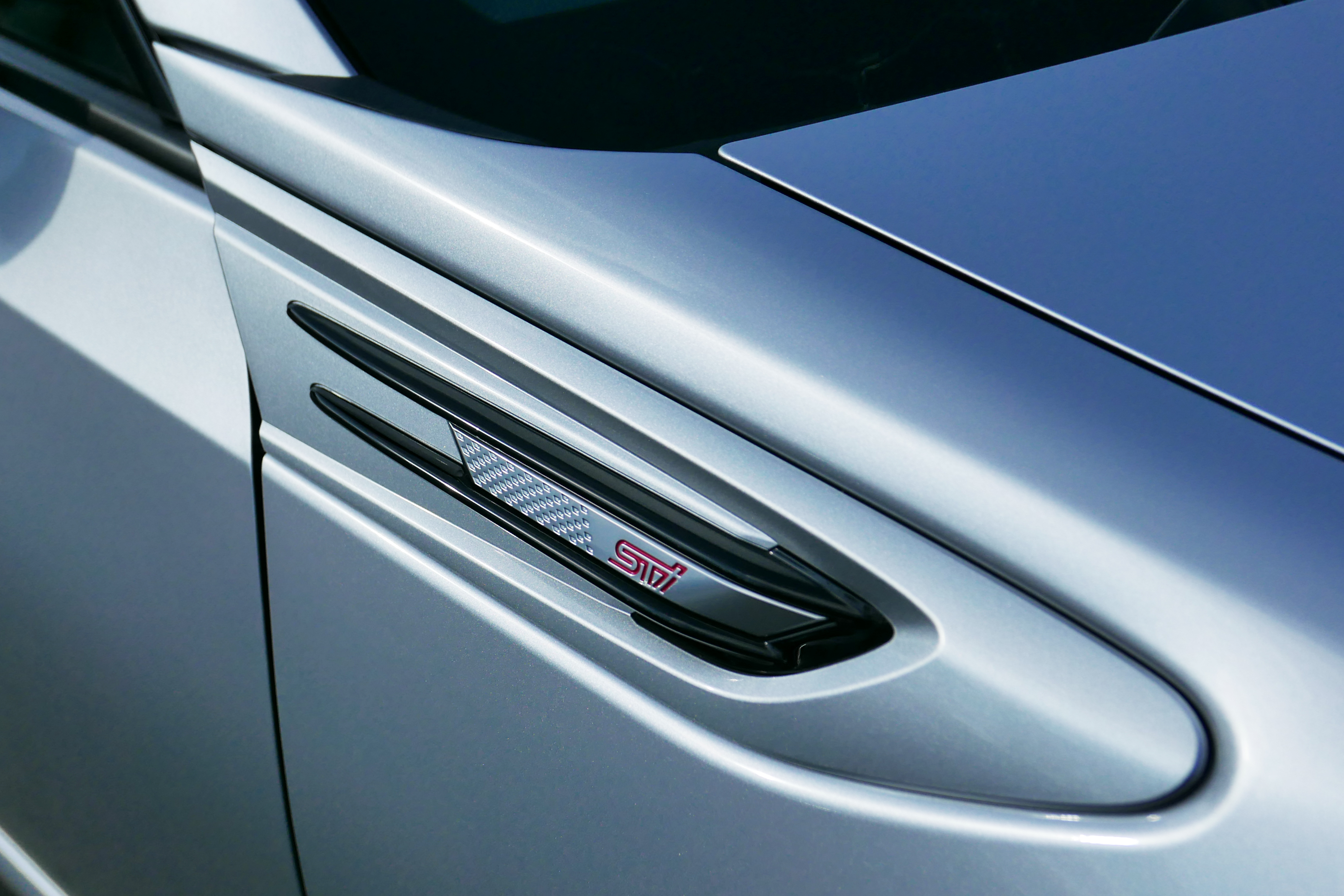 STIスポーツは、内外装の仕立ても大人を意識したものだ。まずエクステリアは、STIというネーミングから連想させるような、尖った演出が皆無。リアスポイラーこそやや目立つが、あとはフロントバンパーのSTIエンブレム、専用のフェンダーガーニッシュ、艶のあるブラックでコーディネートしたドアミラーやシャークフィンアンテナなど、小物やホイールなどに派手さはない。