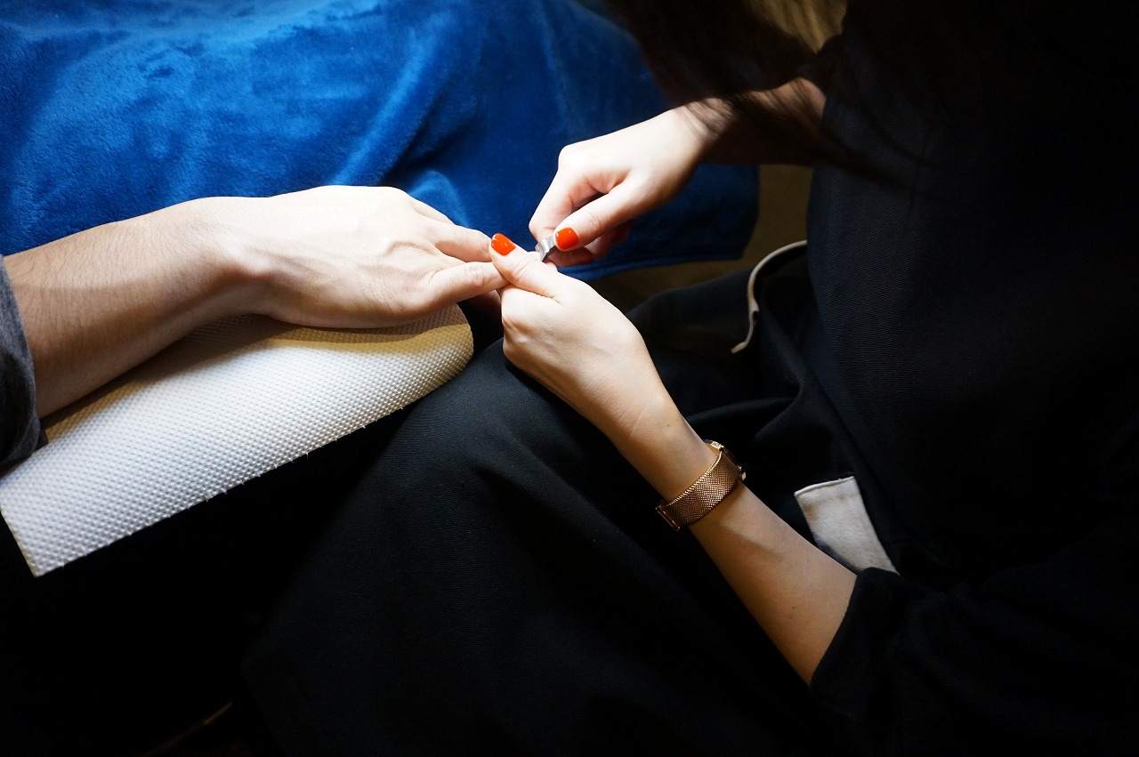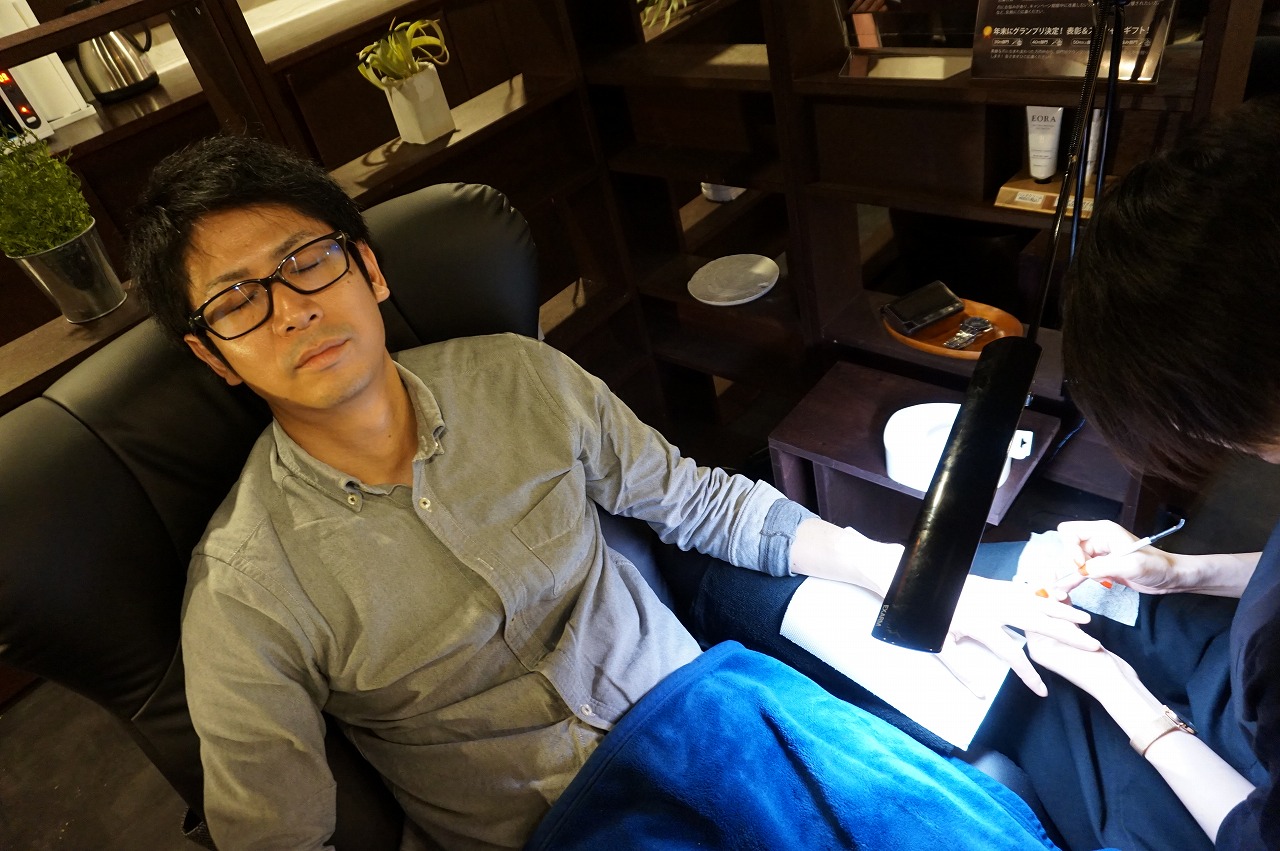 ▲施術中の男性編集者も、はじめは爪をいじられることに少し照れていたが、すっかり慣れた様子