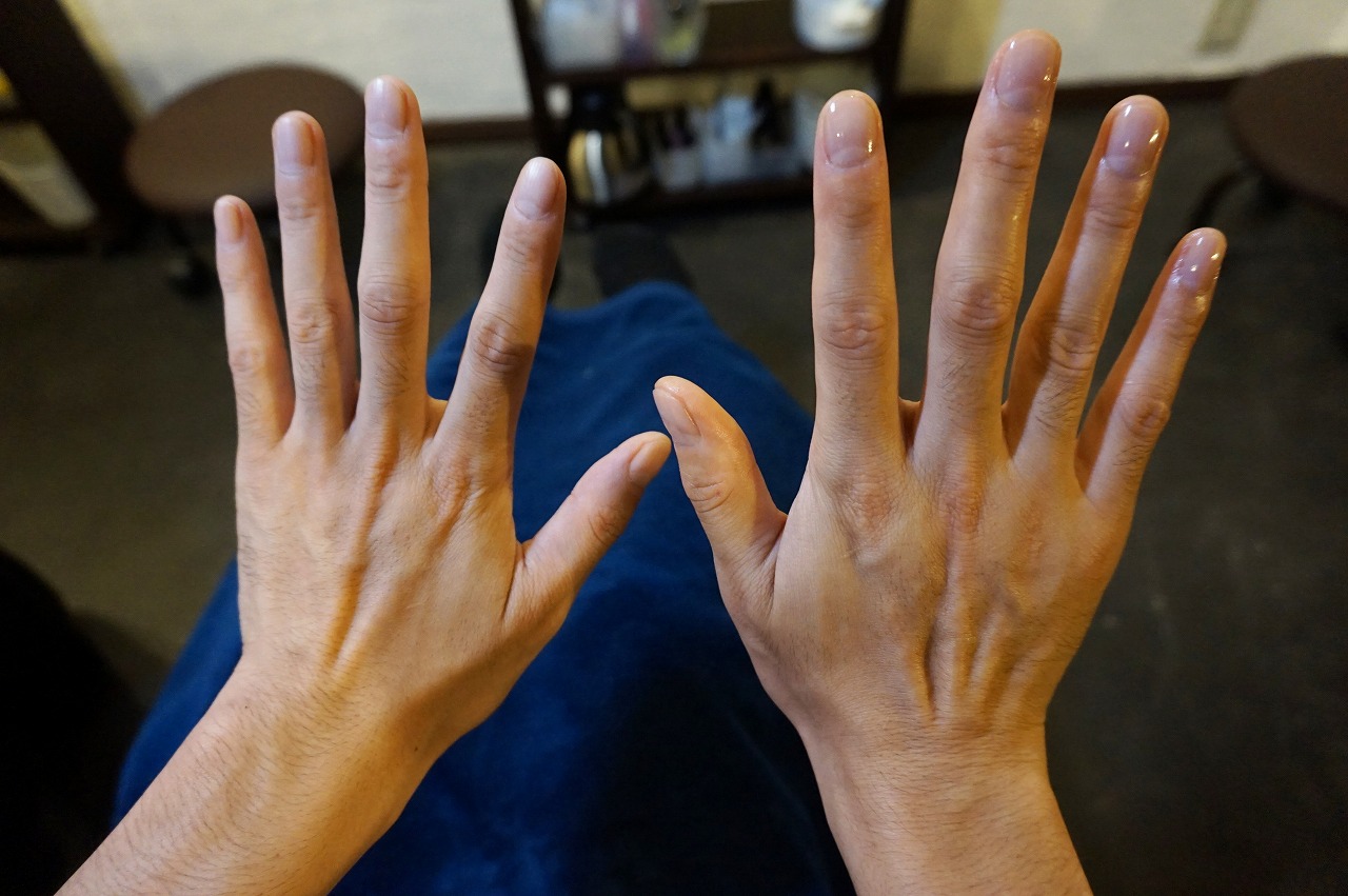 淡野:こちらが爪を整えた状態です。男性の場合、爪が傷んでいたとしても女性のネイルのように上から隠すことはできません。いかに傷みを目立たなくさせ、健康的な爪に近付けることが大切なんです。