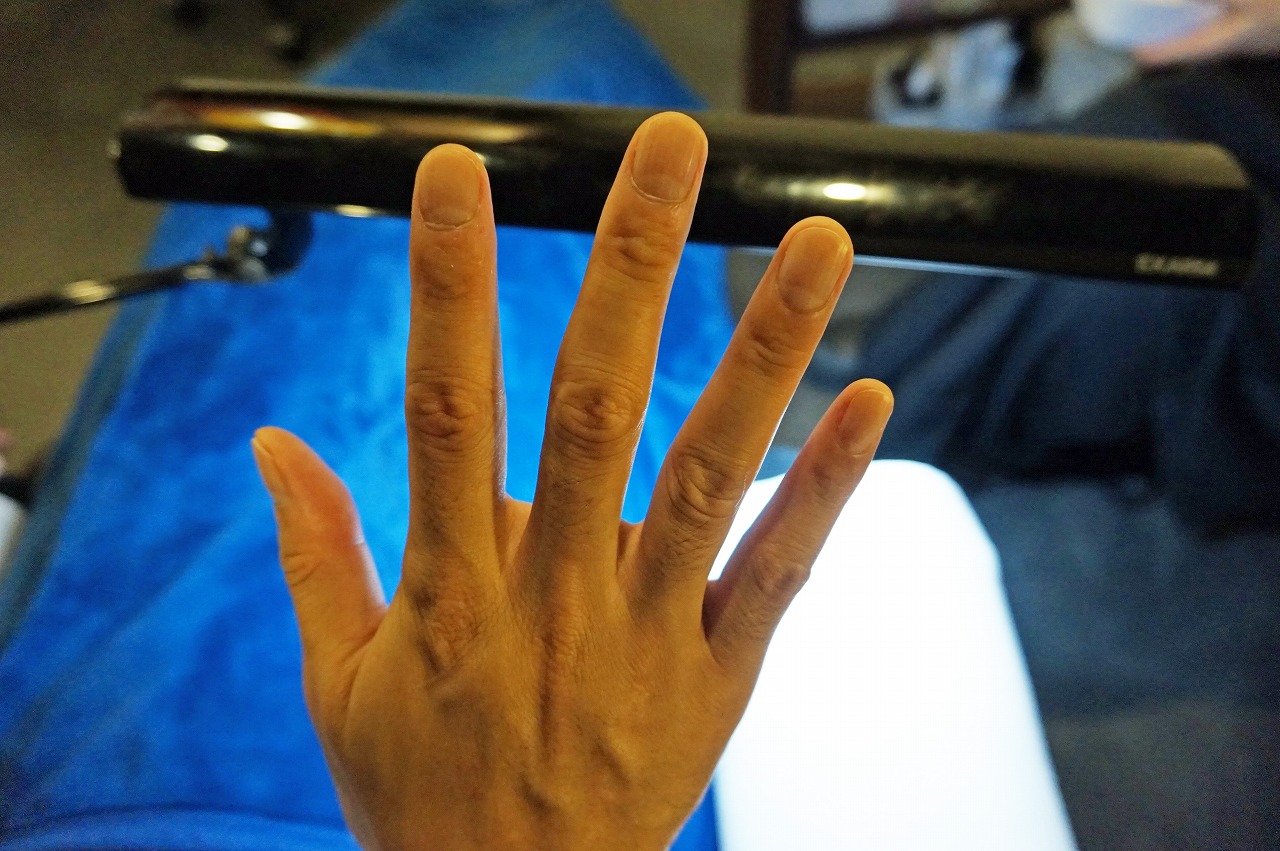 ▲さっそく施術スタート。こちらが施術前の爪の状態です。