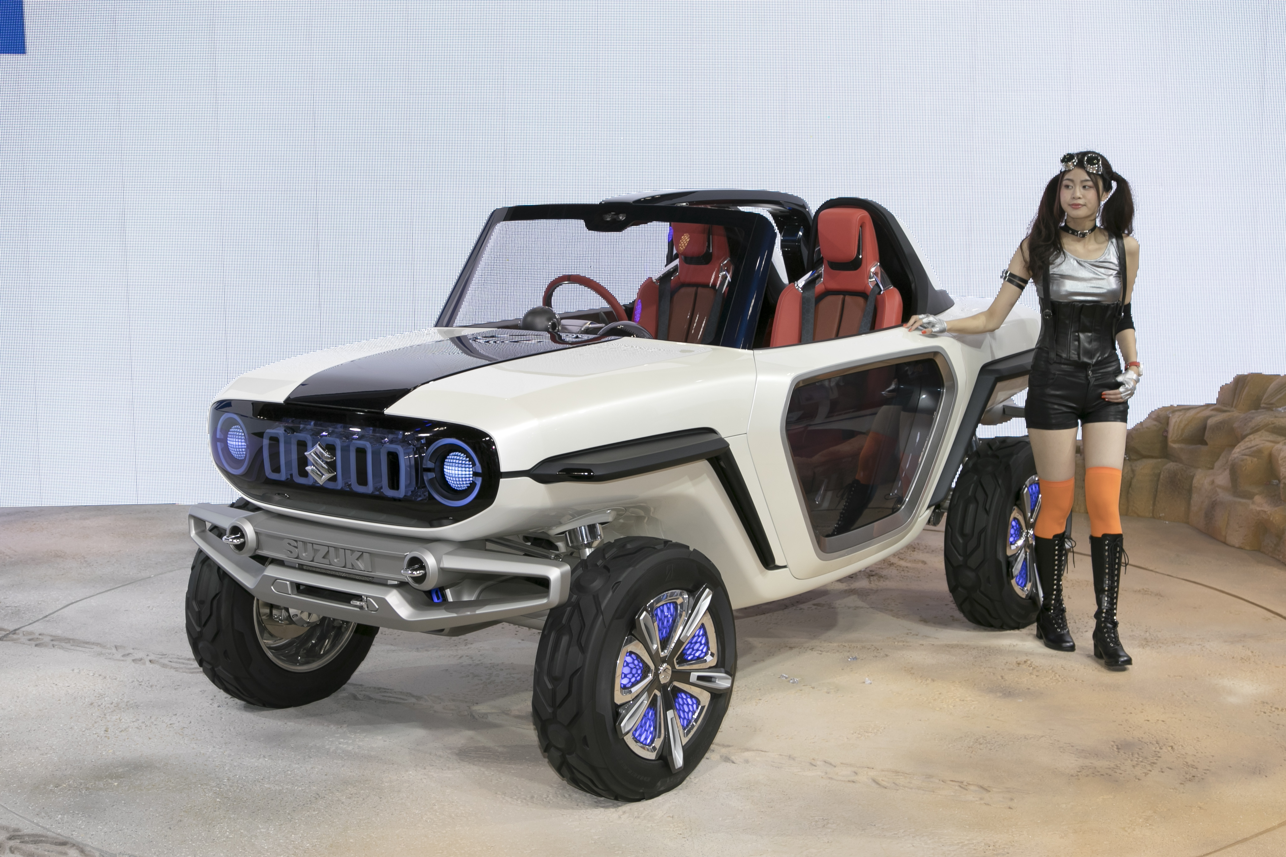逆に「こんなクルマのボディカラーにも名前が付いてるの!?」と思ったのが、スズキ「e-サバイバー」の“スペースシップ・パールホワイト”。確かに、月面着陸しそうなデザインのクルマなので、ボディカラーの名称も納得の“宇宙的”ネーミングです。