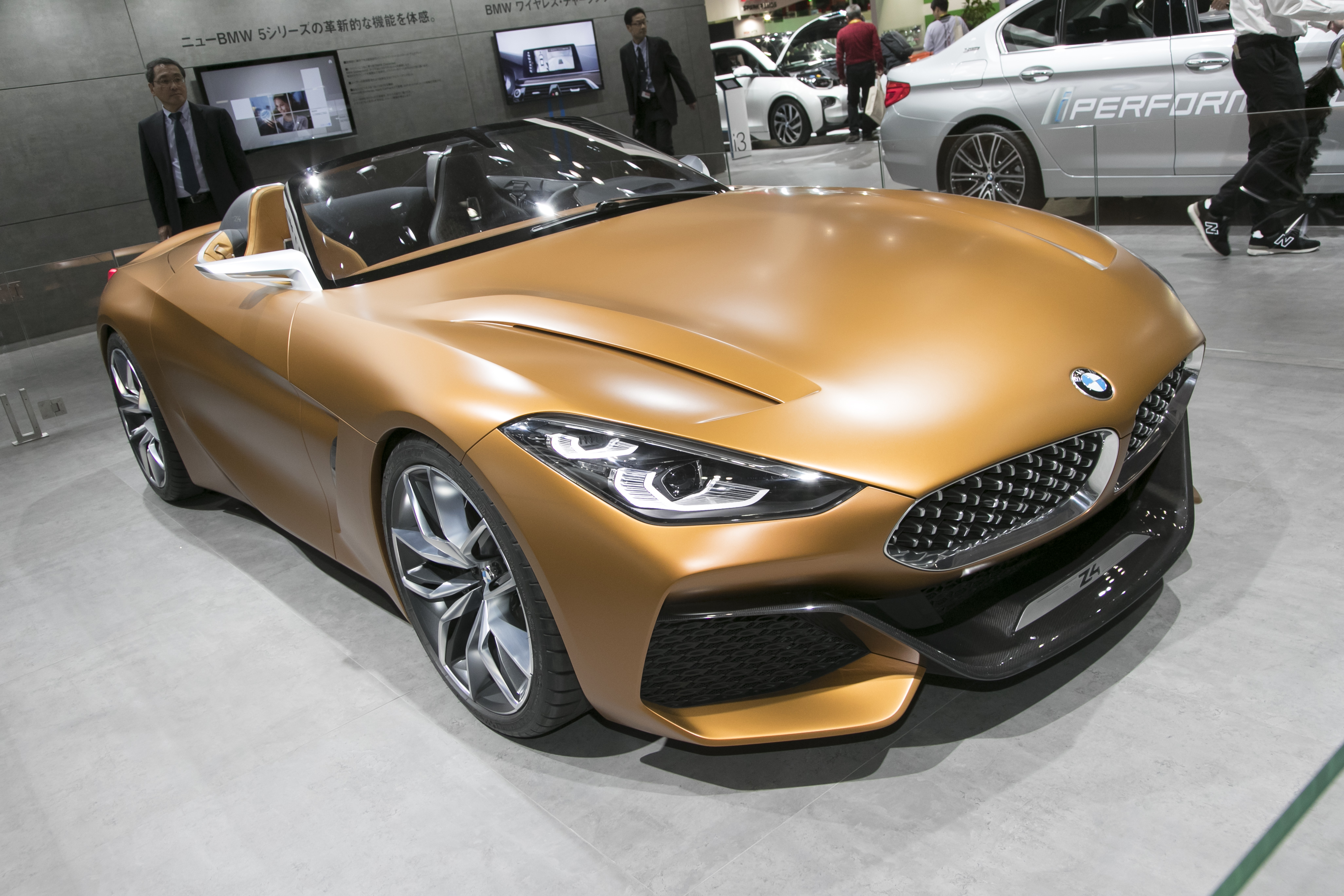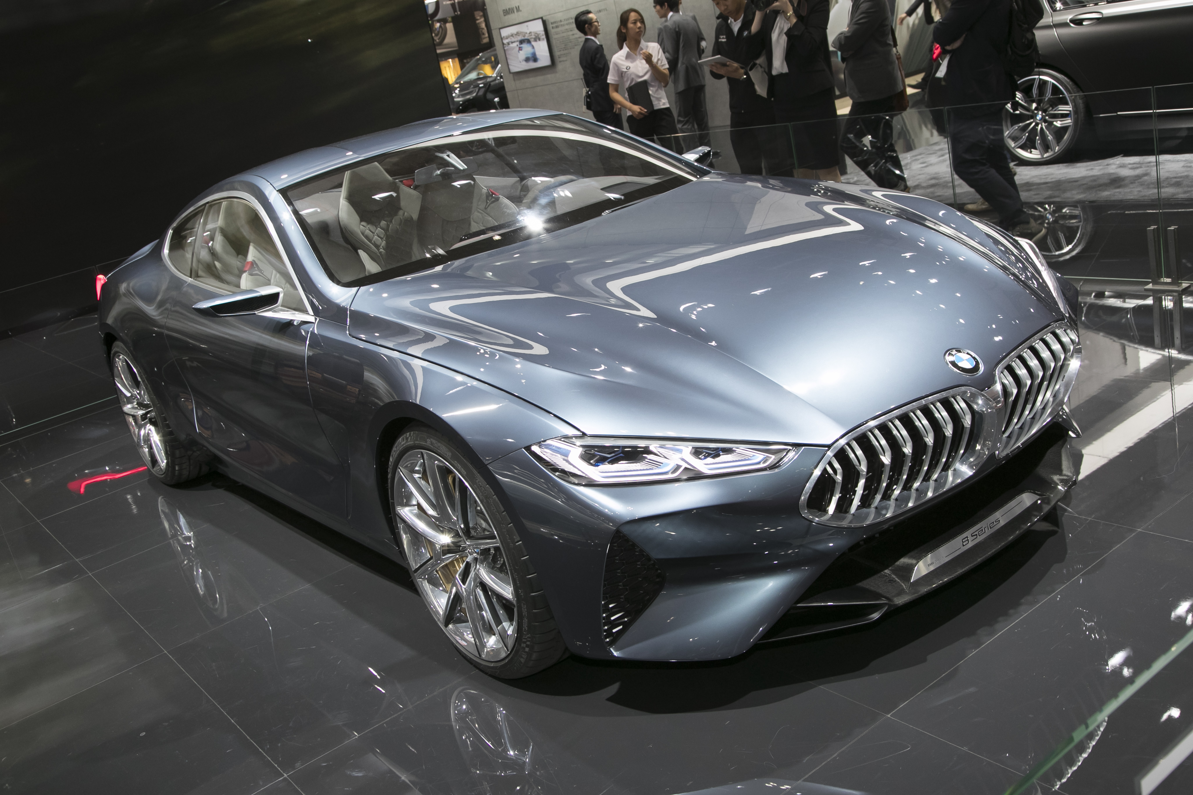 BMW「コンセプト 8シリーズ」に塗られていたブルーグレーメタリックの名は“バルセロナ・グレイリキッド”。BMWはもう1台の「コンセプト Z4」でも、個性的な“エナジェティック オレンジ フローズン”と呼ばれる茶色がかったオレンジで、大人のスポーツを演出していました。