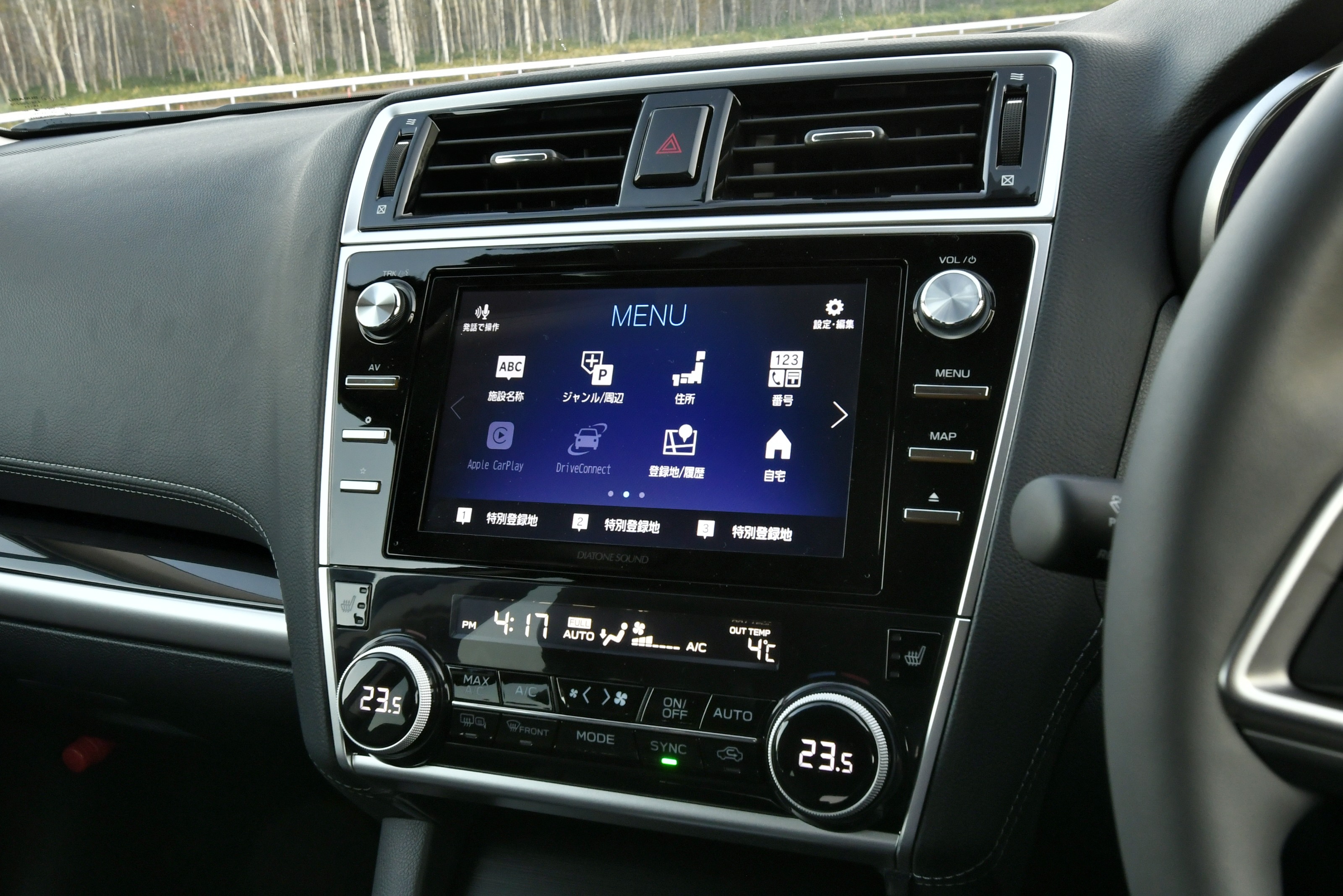 車内に入ると、インテリアの上質感がひときわ増していることを実感した。大きな理由は、インパネ周辺の変化だ。インパネ表面に革巻きダッシュボードをイメージさせるステッチを入れるとともに、センター部分はナビとエアコンパネルがフラットに見えるデザインとし、フィニッシングの見栄えが大幅に向上。ナビはディーラーオプション設定だが、8インチとこれまでよりひとまわり大型のディスプレイを装着できるよう改良され、同時に、エアコンパネルは上下幅が薄いデザインへと改められている。この辺りは、今夏に大規模マイナーチェンジを施した「レヴォーグ」や「WRX」と同じ手法だ。