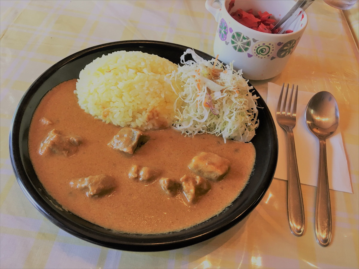 さっそく、スプーンを口に運ぶ。「ん、甘い!」 口に入れた瞬間に感じたのは甘さ。その甘さを味わっていると、次にスパイスの香りと辛さがやってきます。そして最後には豚肉の濃厚さが舌に残ります。先代から引き継いで2代目というご主人によると、野菜やマンゴーチャツネの甘さが出ているのだとか。カレー用のスパイスも時代に合わせて常に改良を加えているとのこと。