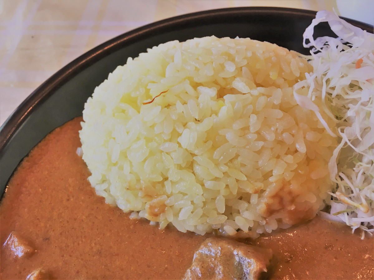 ▲香り高いサフランライスが、野菜の甘みが強いルーにぴったり