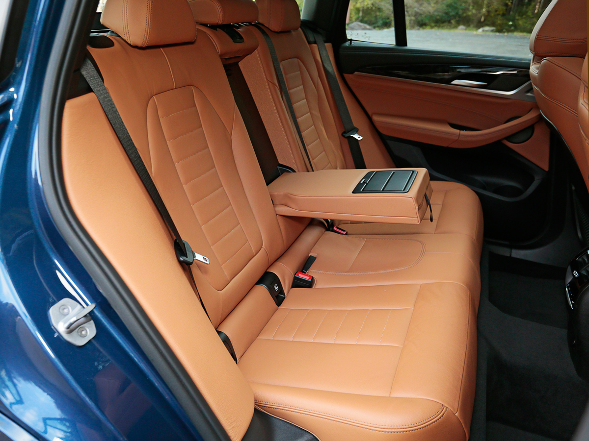 ハンドルを握るのが楽しいX3はまた、ファミリーカーとしても優秀です。スクエアなボディ形状を活かし、前席はもとより、後席の居住性も高い。座面の高さが適当で、膝前、頭部まわりの空間も十分。居心地のいいリアシートです。もちろん、3名掛けが可能ですが、フロアに太めのセンタートンネルが縦貫するので、センターシートは臨時用と考えるべきでしょう。