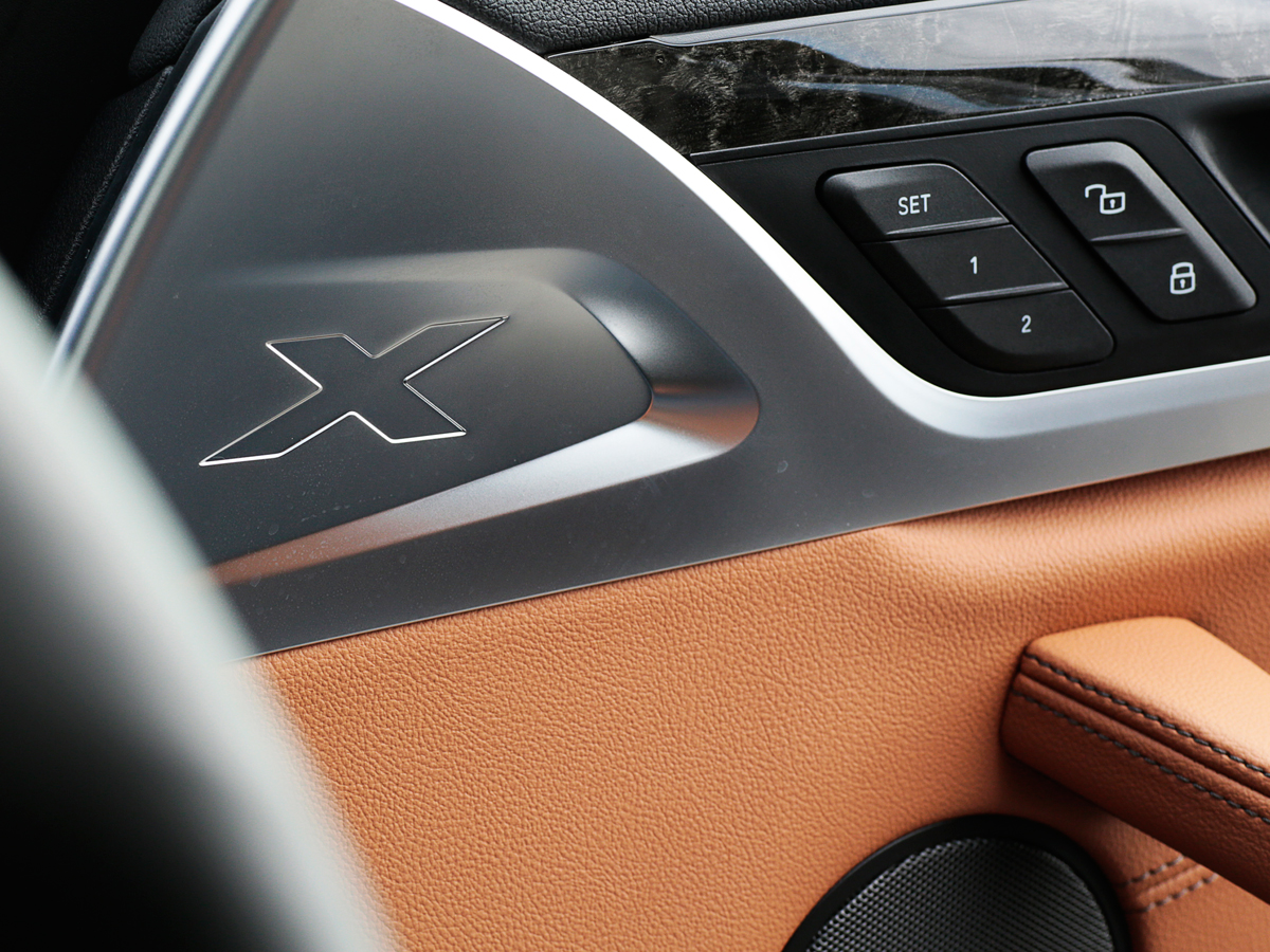 大きく立体的になった“キドニーグリル”、アグレッシブなフロントバンパー側面下部のエアインテーク、そして、フロントフェンダー後ろのエアブリーザー(エア抜き)などが、SUV…BMWいうところのSAV(スポーツ・アクティブ・ヴィークル)らしさを強くアピールします。後端がキックする6ライトのサイドウインドウグラフィックと、なだらかに落ちるルーフラインの調和もいいですね。BMWらしい。