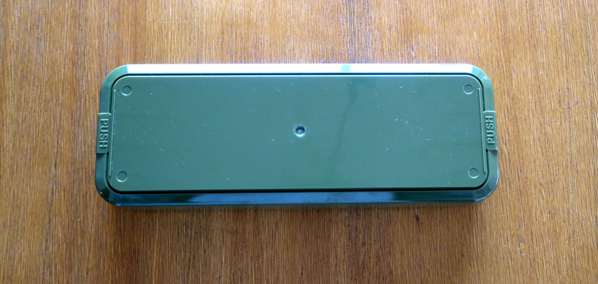 小さく開けられた窓からは、カーキ色が見えます。その横には小さく控えめに<Militaly color>。これってもしかして「アーム筆入」がミリタリーな感じでタクティカルになったってことですか? そんなこと言われたら欲しくなっちゃうじゃないですか。永遠の小学生男子たちのハートを確実にキャッチするキラーワード“ミリタリー”の罠に見事にハマり、結局購入してしまいました…。「アーム筆入ミリタリー」1296円也。ちと高いっす…。
