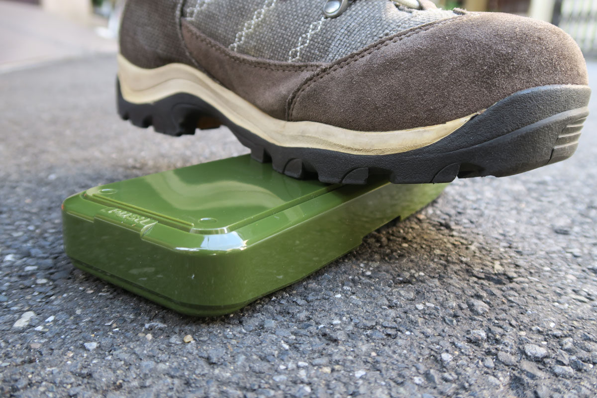 ▲象が踏んでも壊れない? さすがに象はいないので大人の男が踏んでみた! うん、そうそう簡単には壊れそうもない…ぞ…、うん