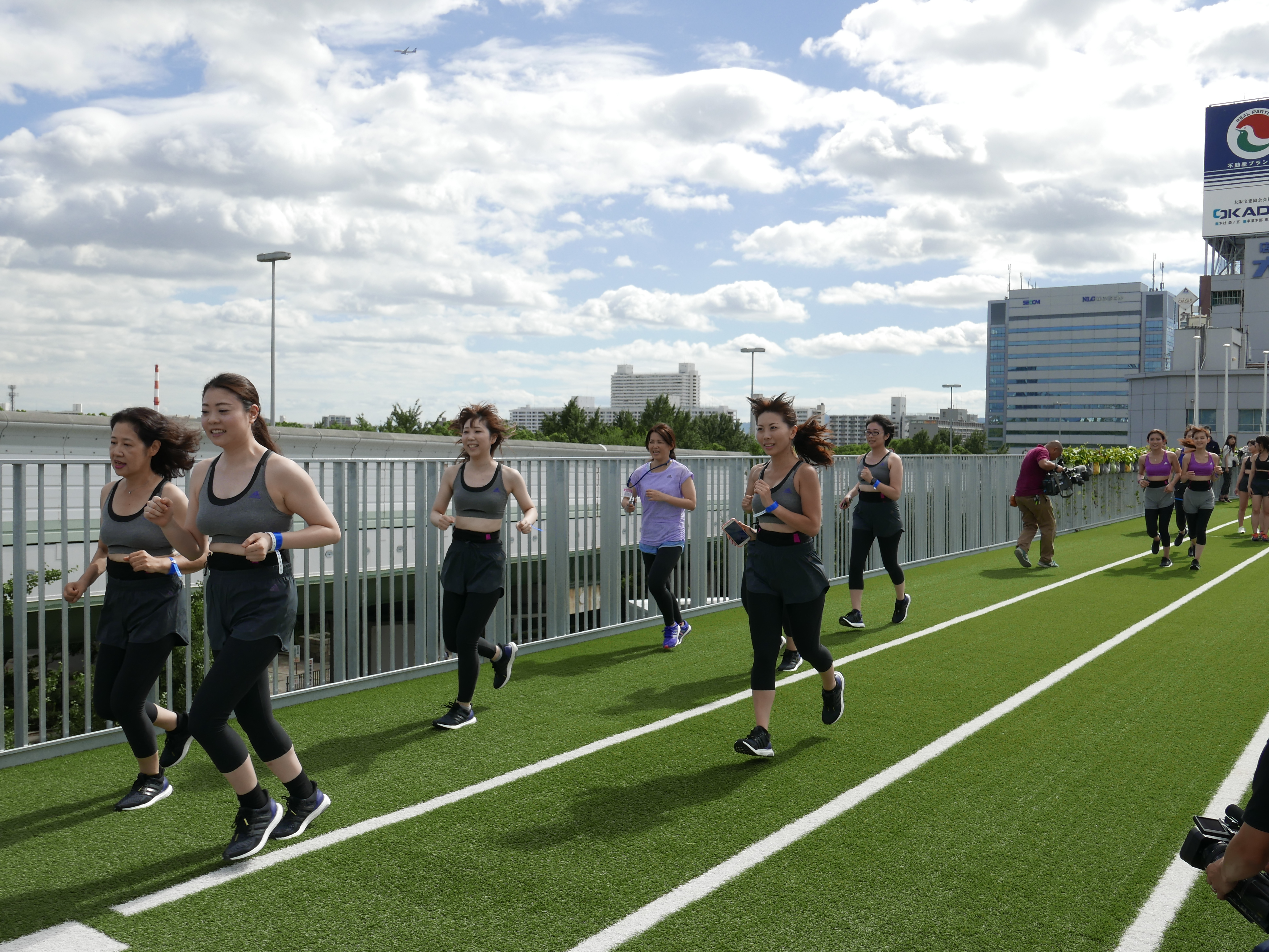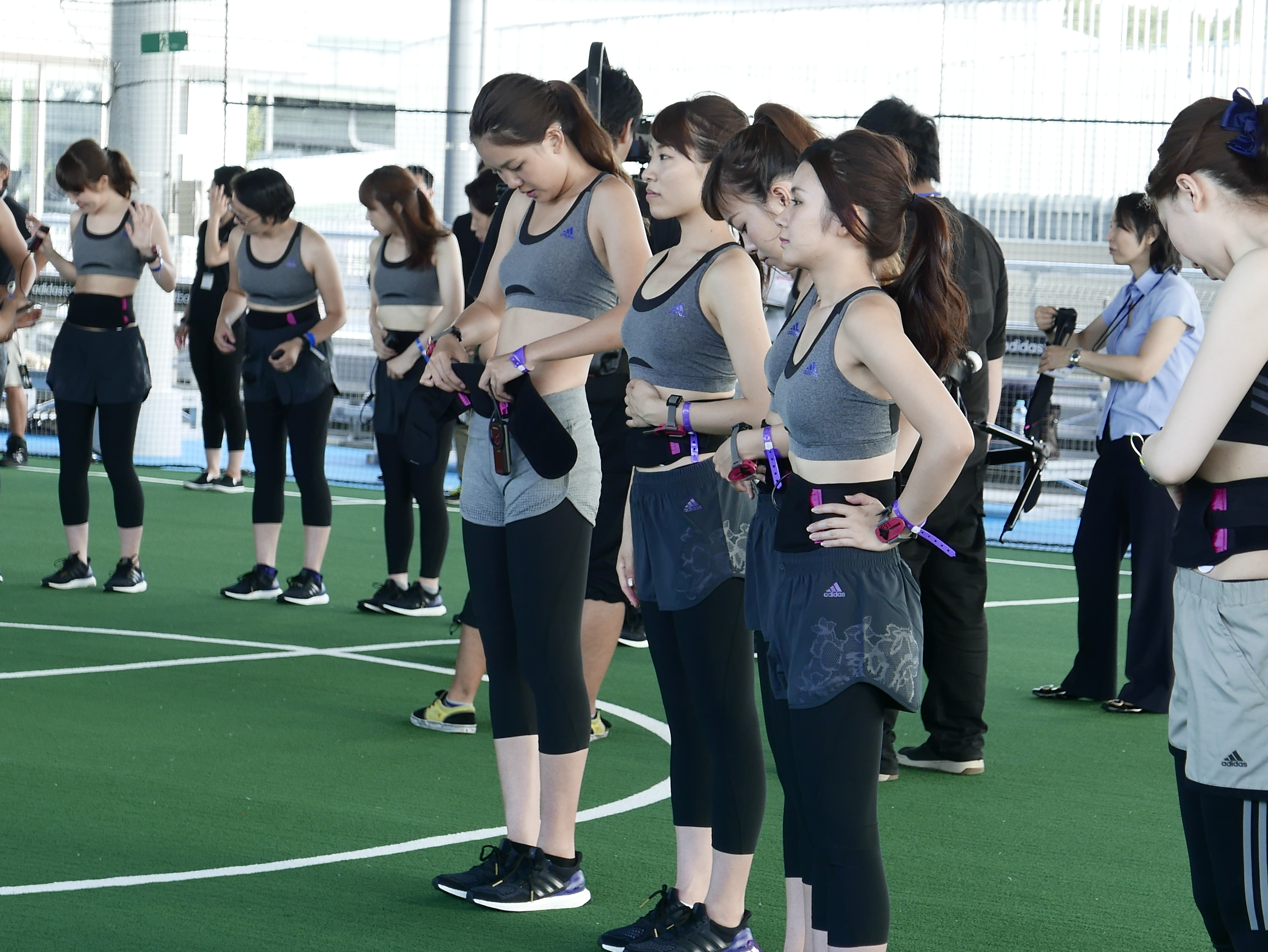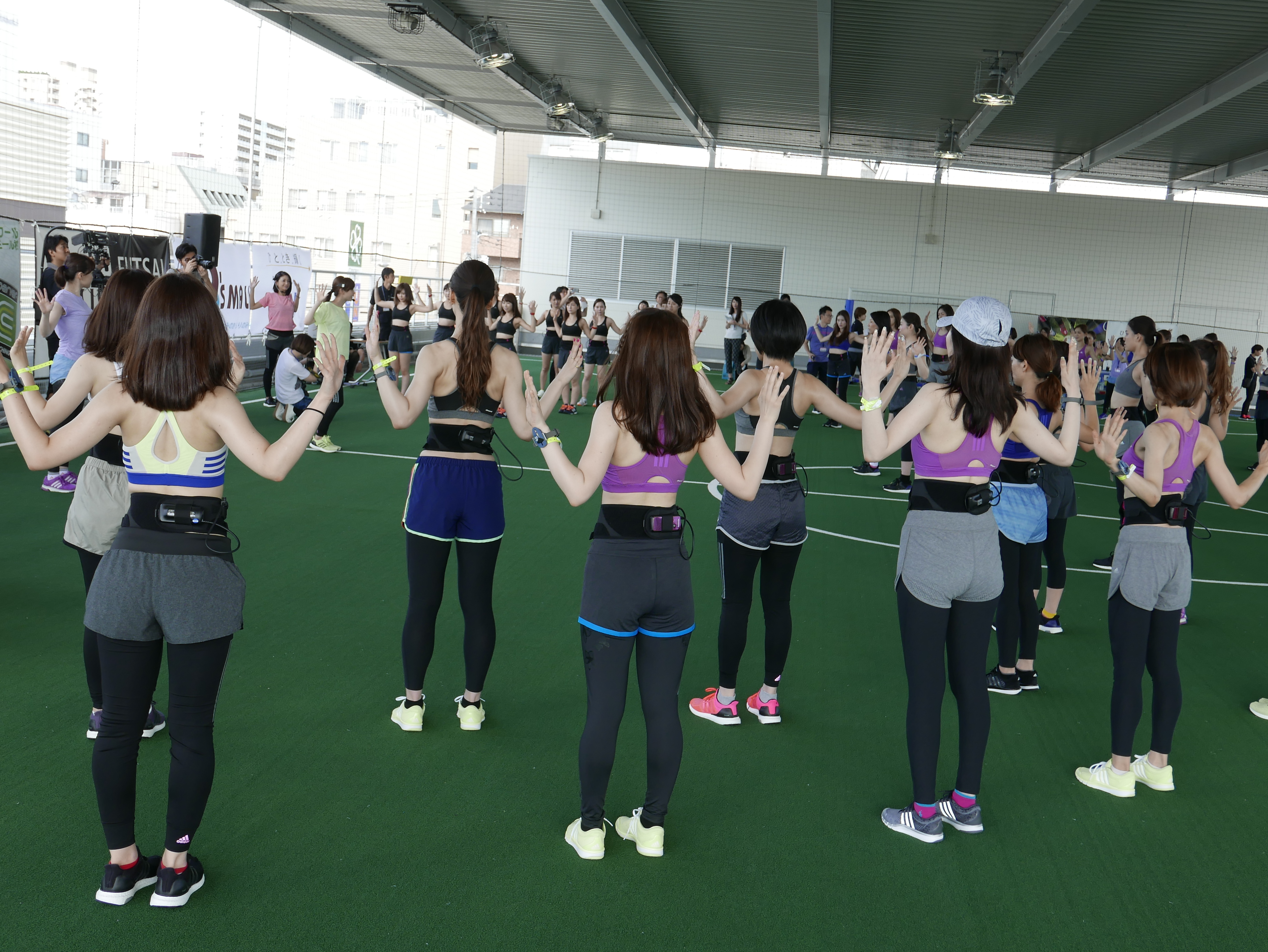 大阪での美トレ体験イベントには、約70名の女性が参加。皆さんパナソニックのビューティトレーニングをおなかに装着し、ランニングやウォーキング、そしてストレッチなどを楽しんでいました。