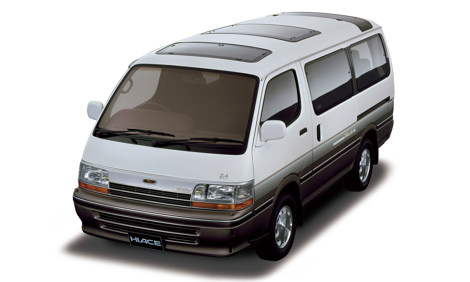 ’89年にデビューした4世代目100系は、それまでのコンセプトを継承しつつも、ワゴン系モデルはより豪華さを追求。高級ワンボックスカーとして、企業などの移動車としても採用されるようになりました。今日のミニバンで一般的となった、パワースライドドアも設定されています。