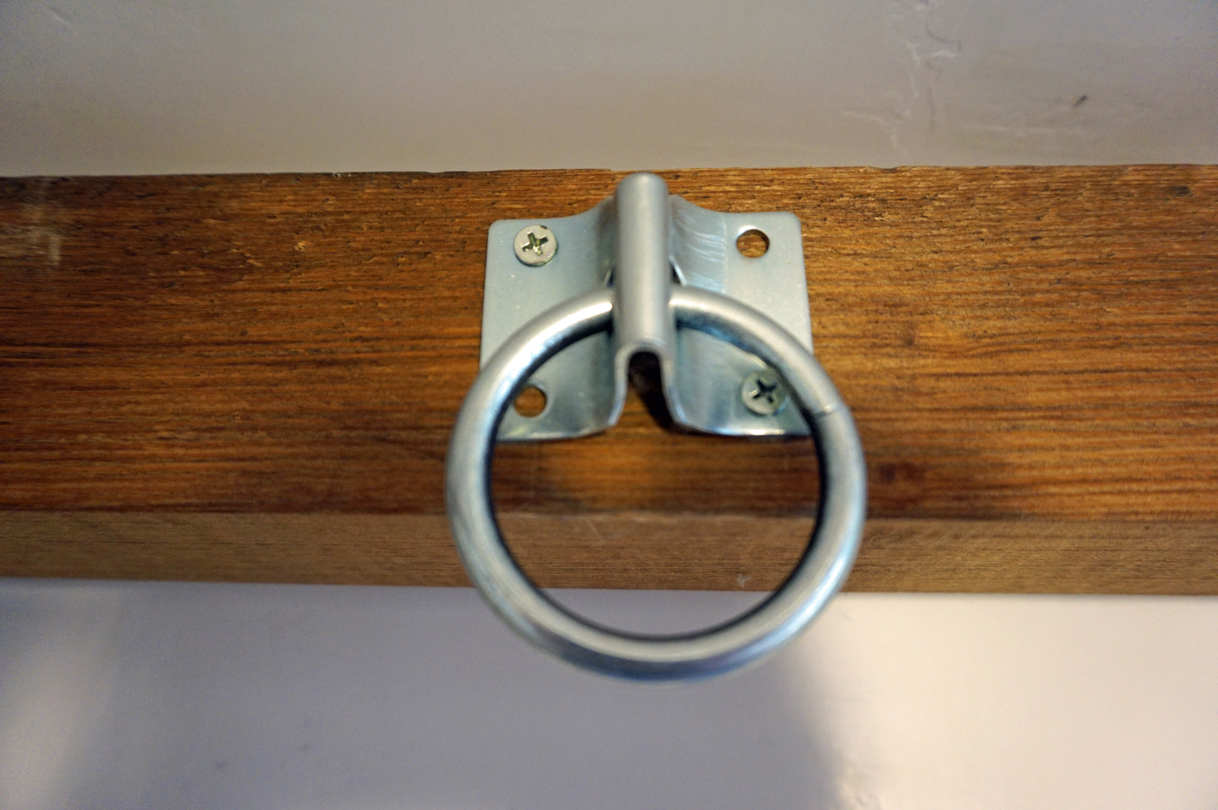 ▲柱や梁に穴を開けてもOKの場合は、写真のような金具を取り付ける。ヒッチングリング(プレート型)1ペア/1100円(税込)