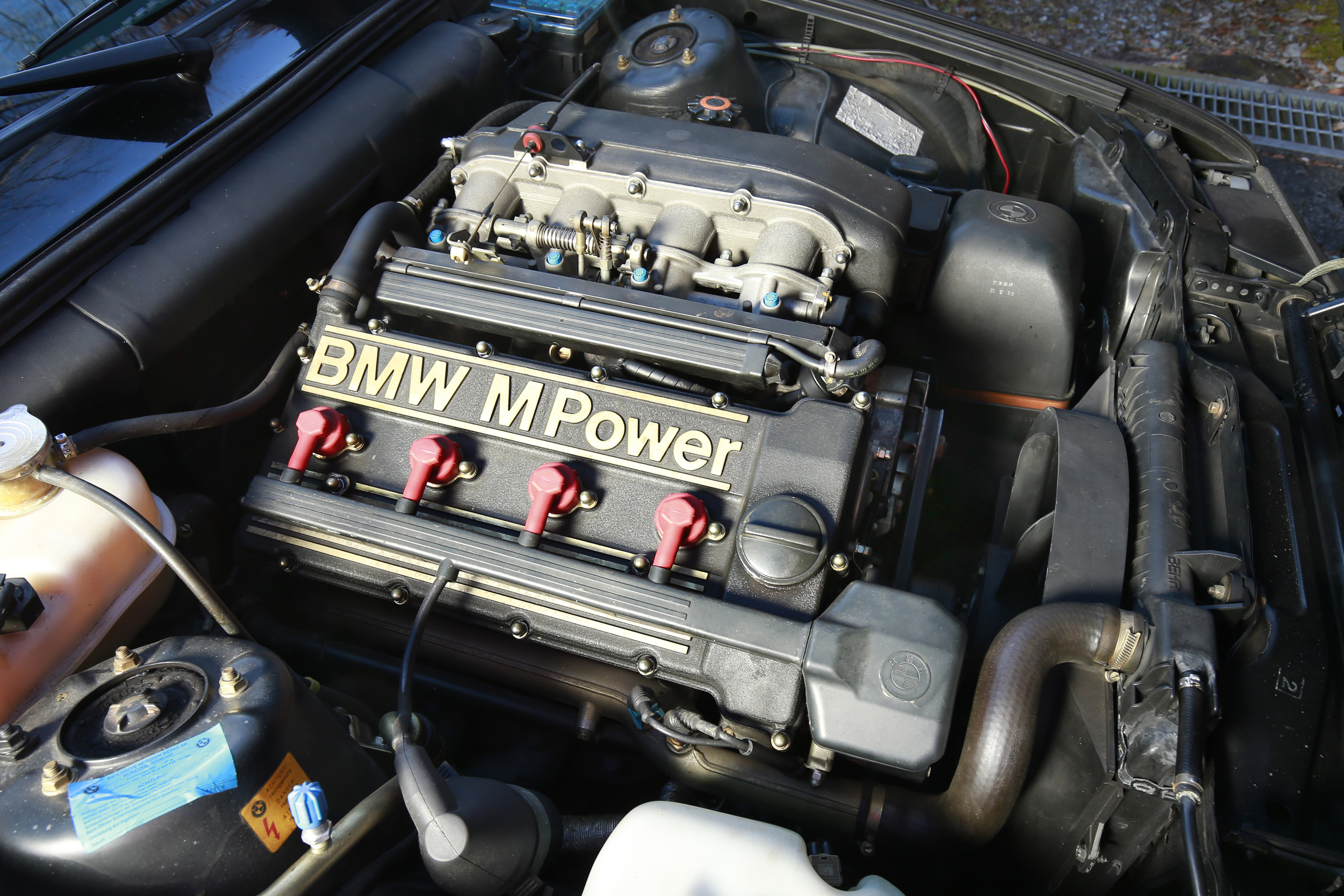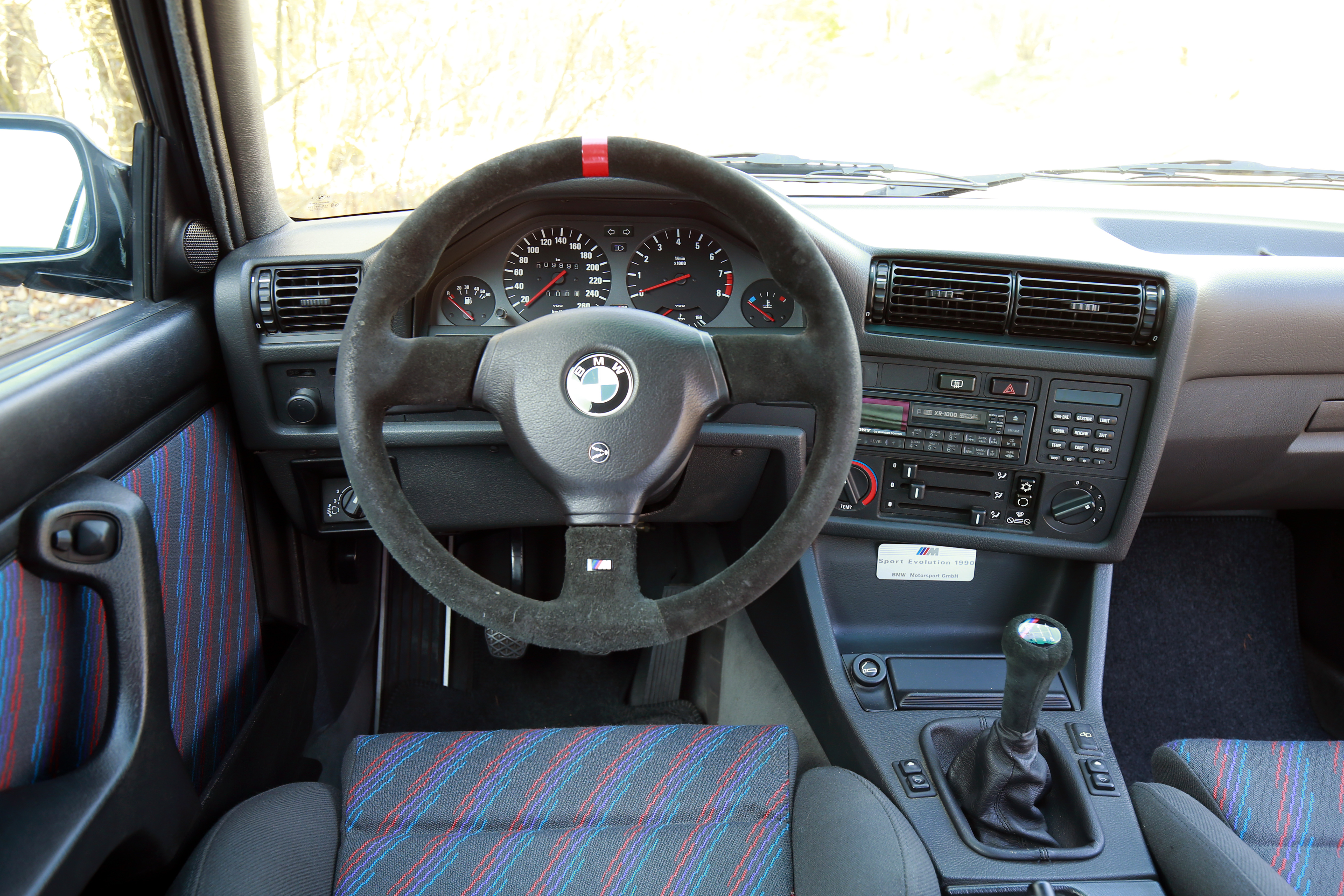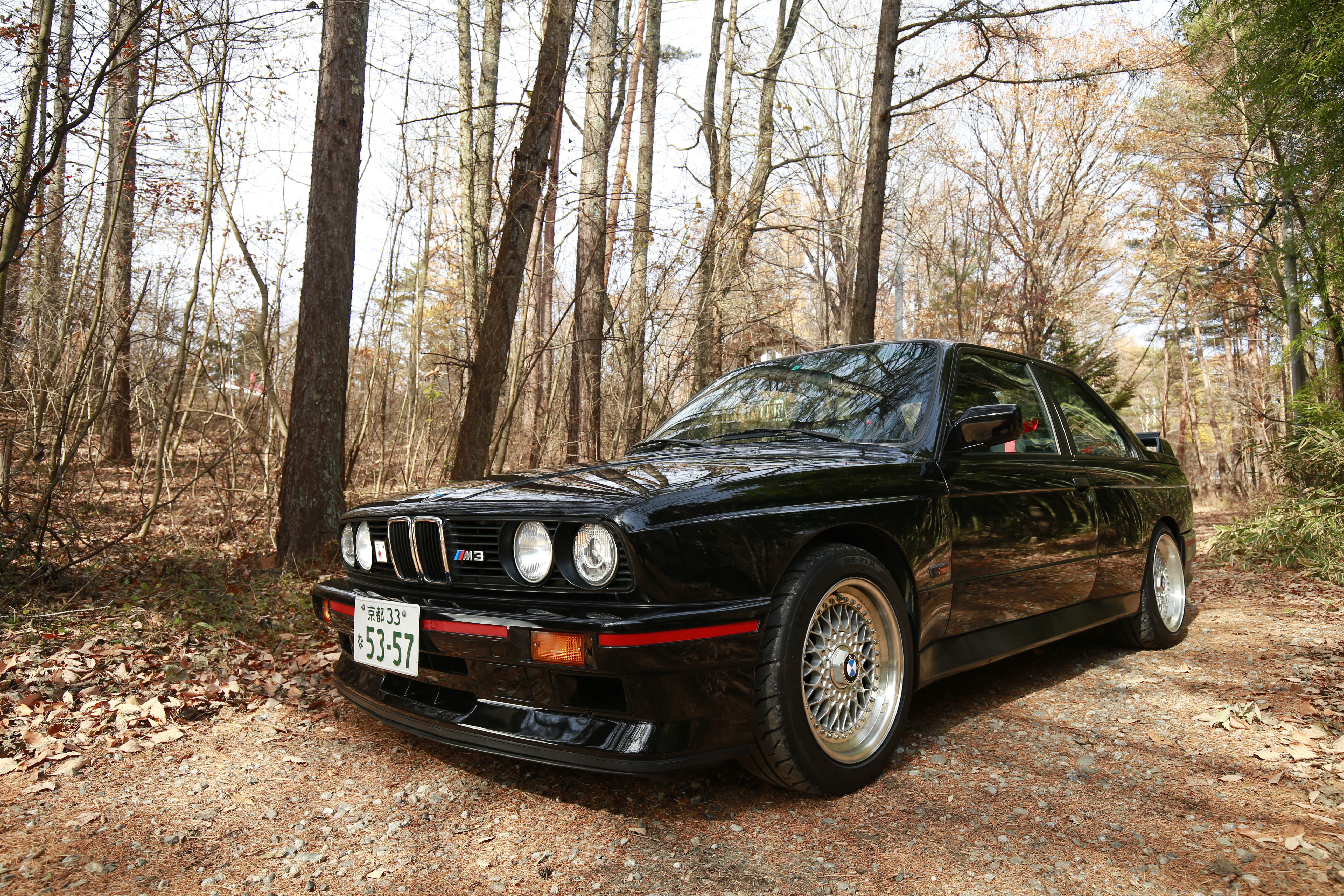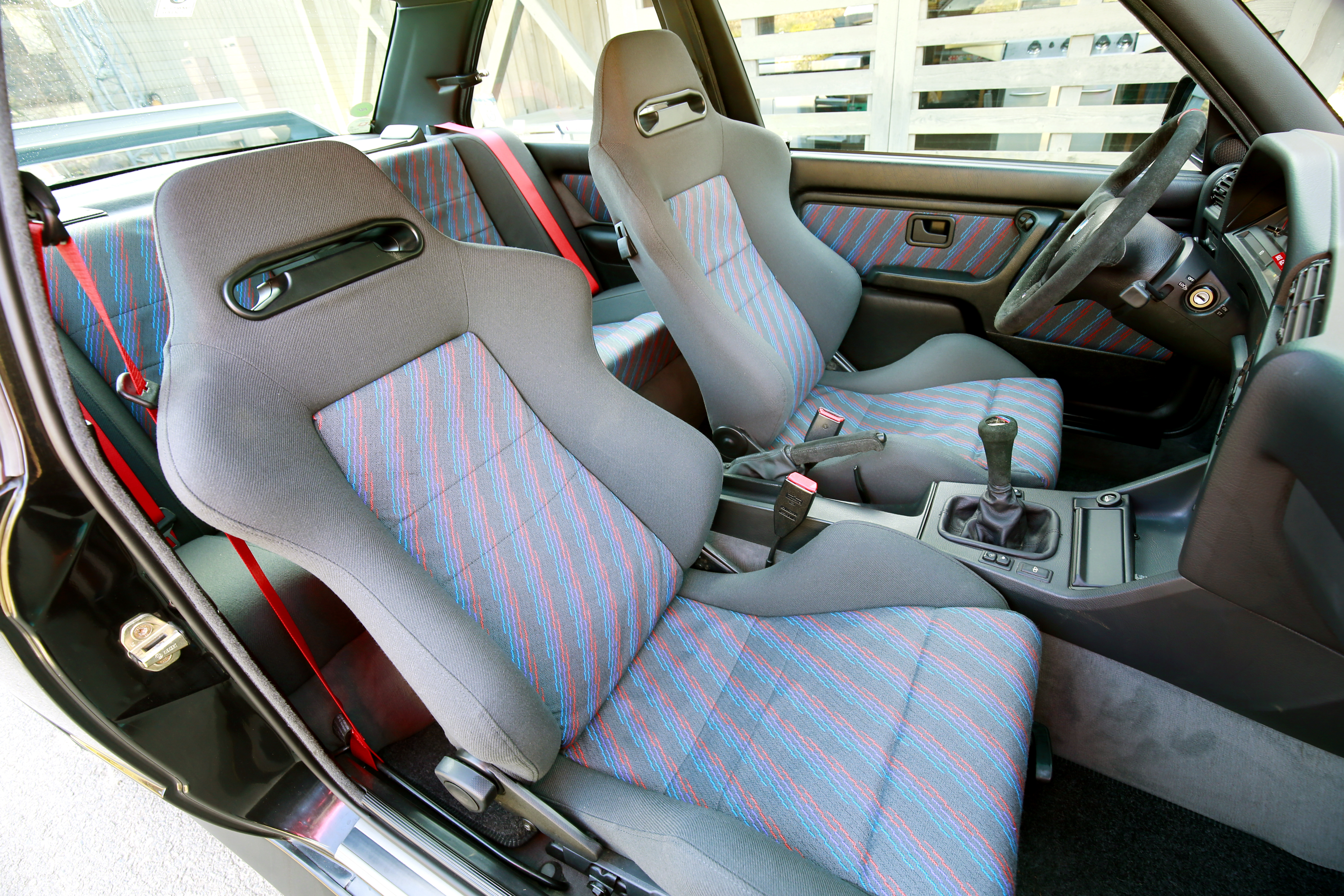 まずは、前後バンパーの赤いラインが印象的な、初代“E30”型のM3クーペ。中でも今回用意されていたのは、世界で600台ほどしか生産されなかった最終モデル「スポーツエヴォリューション」(1990年)で、エンジンの排気量が2.5リッターに拡大されたモデルです。