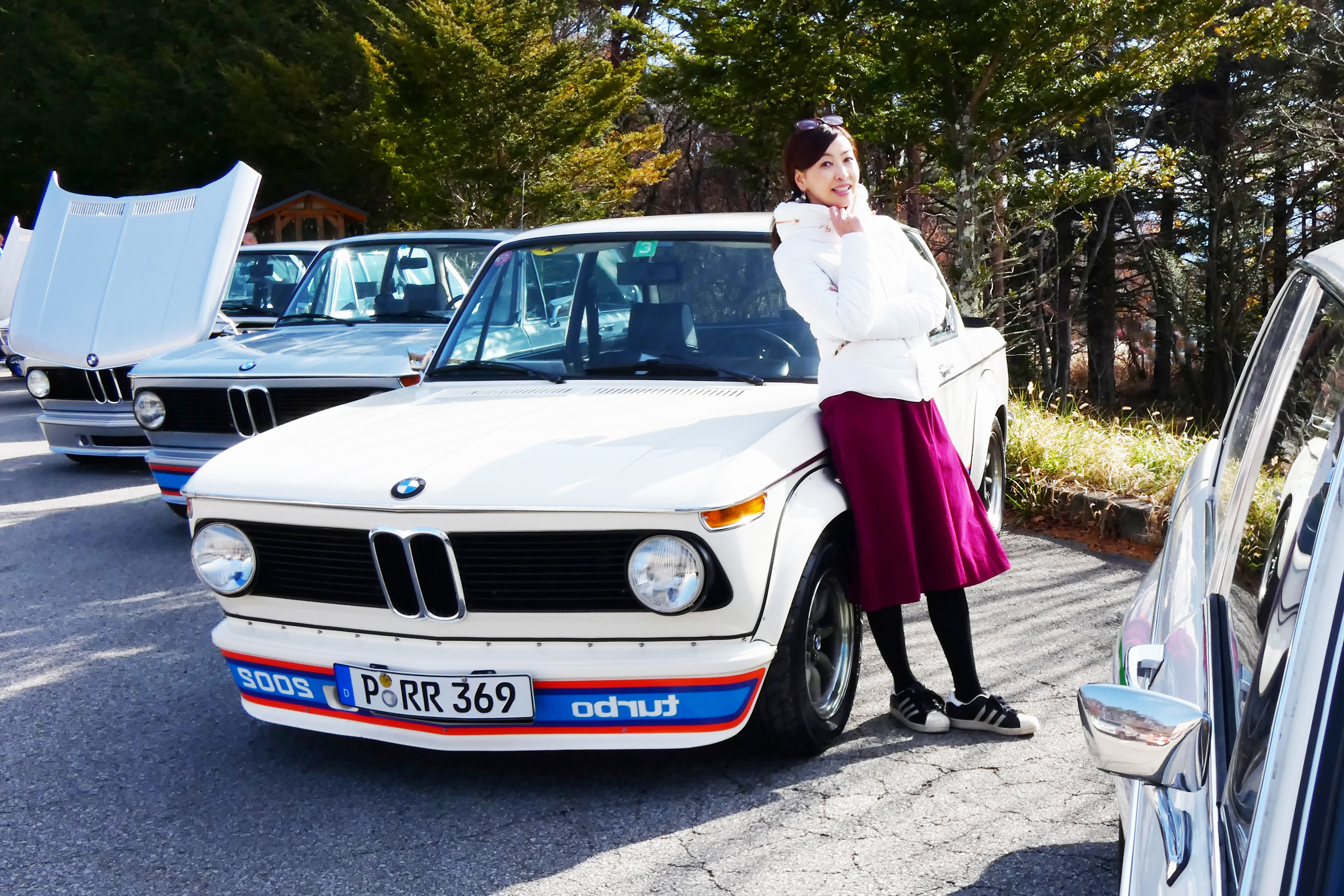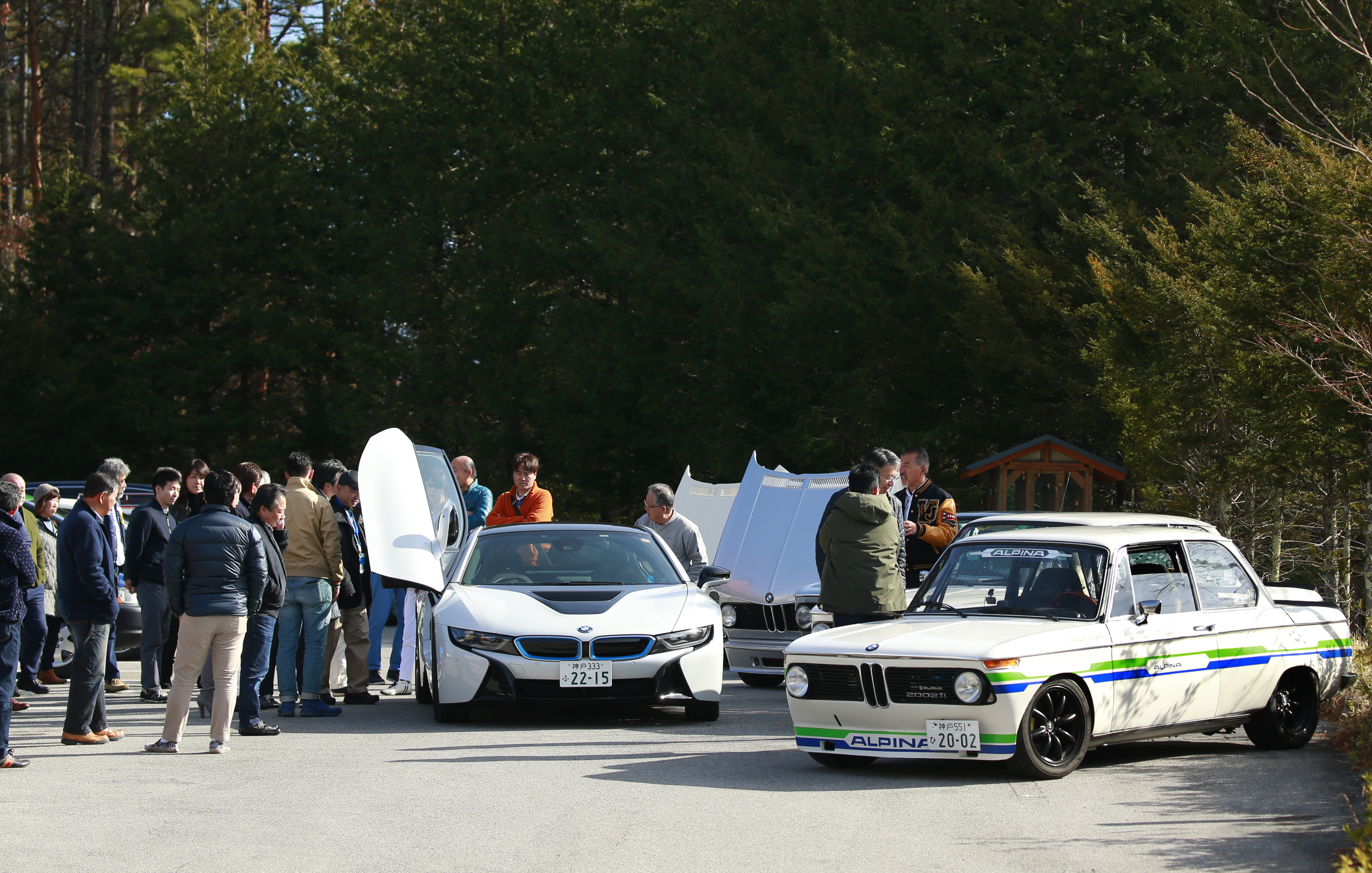 夜が明けて翌日曜日。駐車場には新旧のBMWが並んでいましたが、私の目を惹いたのは「02シリーズ」のグループ。同シリーズは、1966年から1977年にかけて製造・販売されていた、丸いライトがアイコンの小型2ドアセダンで、日本では「マルニ」の愛称で親しまれました。2リッターエンジンを積む「2002」にちなんで、クルマのナンバープレートを“2002”にしている方が多かったのが印象的でした。