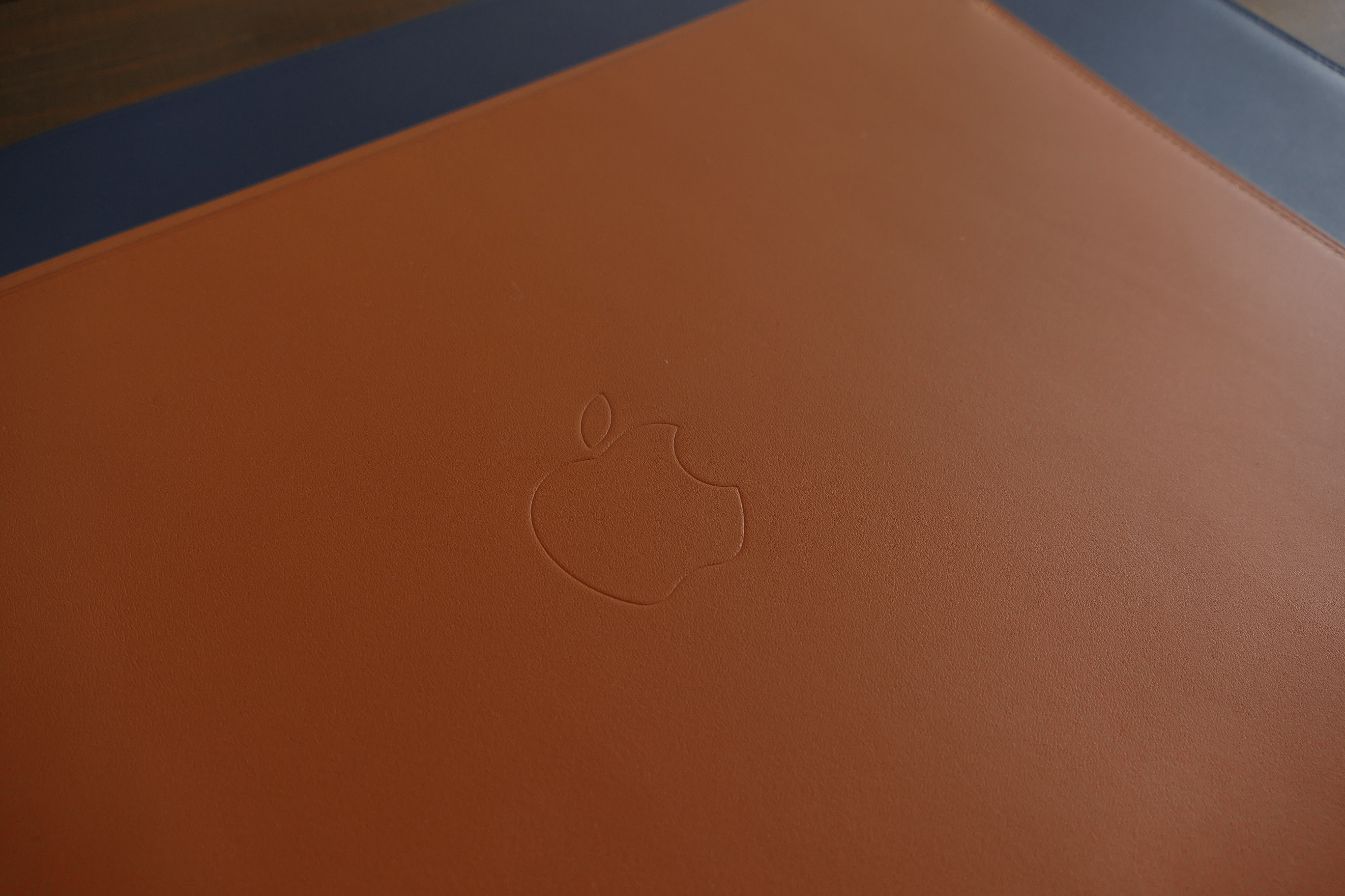 レザースリーブの表面には、Appleのロゴマークが記されています。しかし、目を凝らしてうっすらと見える程度。こういう控えめなデザイン、筆者は大好きです。