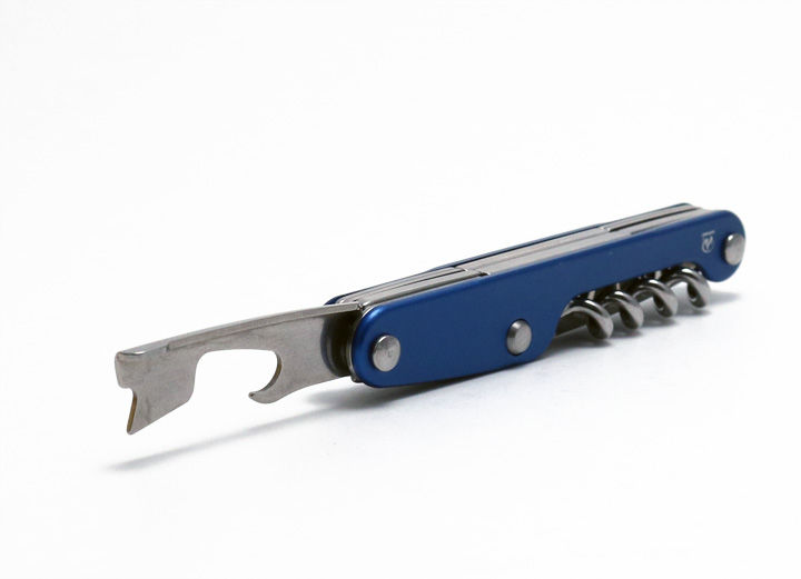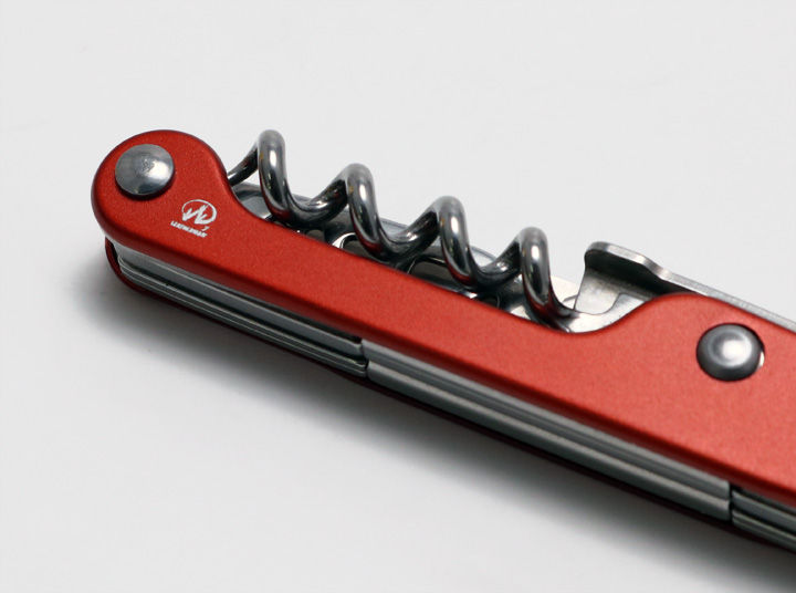 なお、このコルクスクリューを展開しようとすると缶オープナーが一緒に展開します。ソムリエナイフでワインを開けたことがある方なら分かると思います。実は缶オープアナーがアシストとなります。テコの原理で開けるきっかけを作ってくれるのです。何気にこれはポイントが高い機能かと思います。