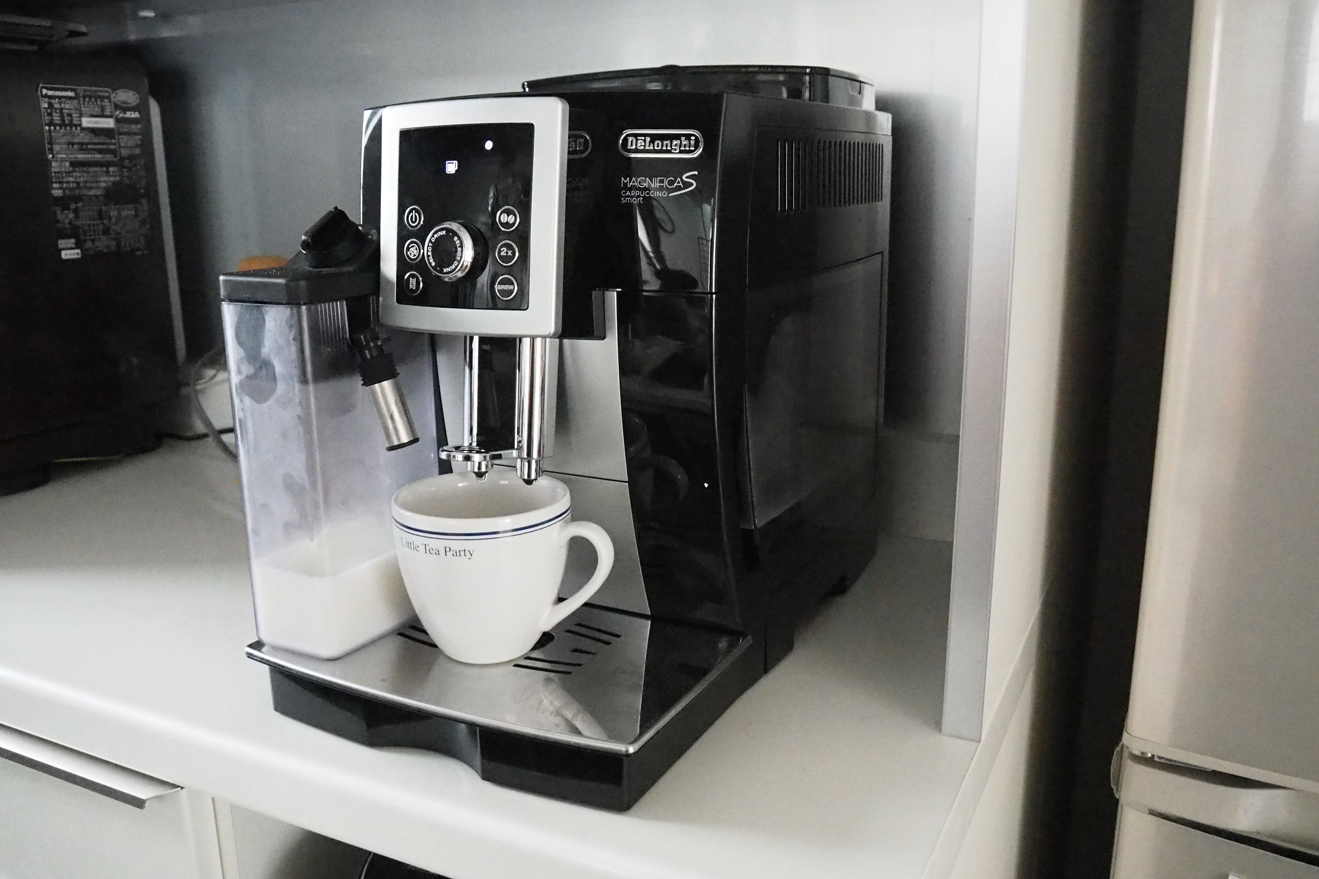 まず第一にお勧めしたいのが、デロンギの全自動エスプレッソマシンだ。「マグフィニカS」シリーズなら、本体後方の投入口に深煎りのコーヒー豆を入れ、水やミルクなどをセットした後はボタンを押すだけで、好みのエスプレッソやカプチーノなどを入れてくれる。