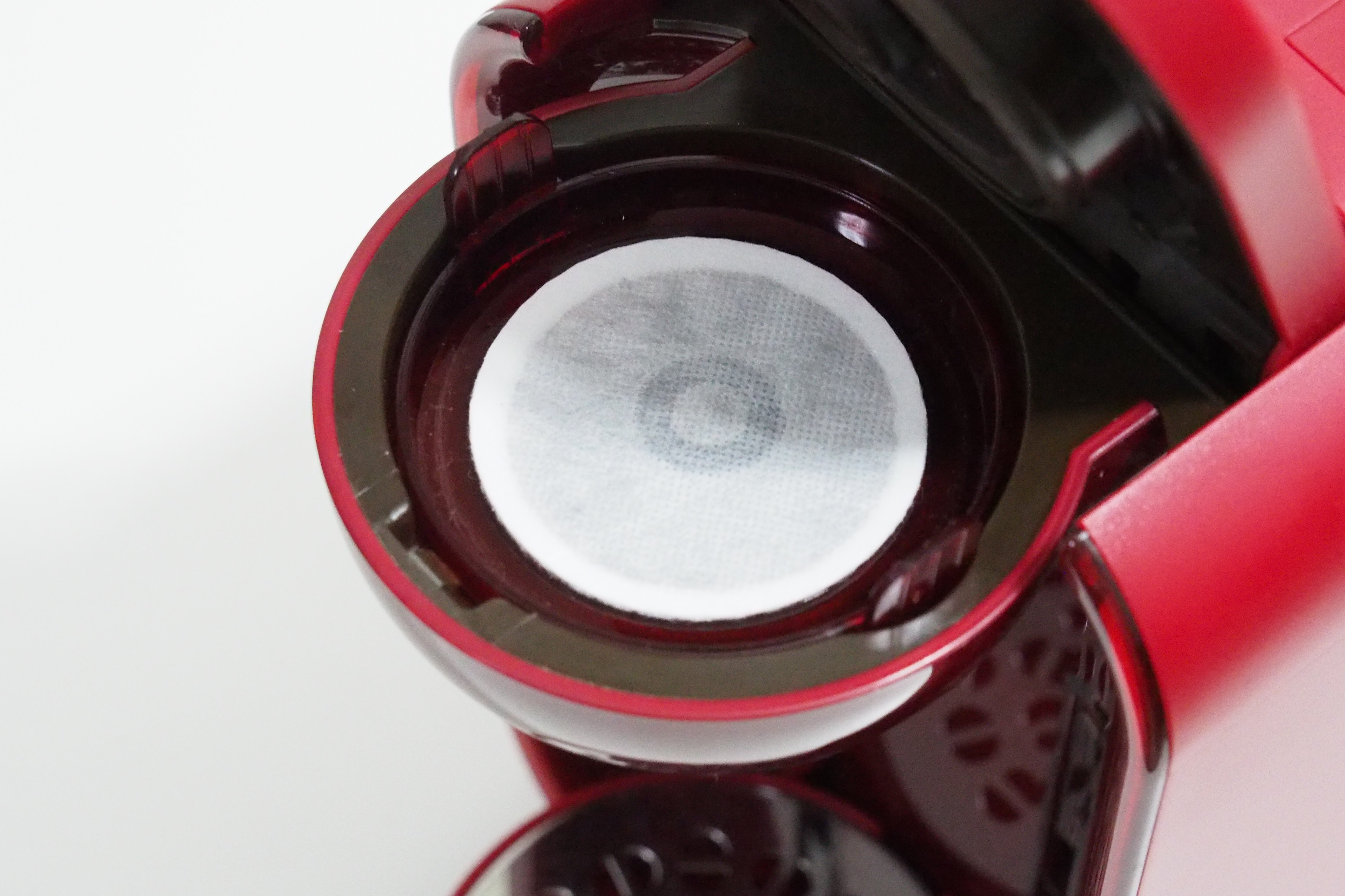 パックからポッドを取り出して、セット。あとは水量を調整して抽出ボタンを押すだけ。あとは自動的に蒸らしながら珈琲を最適な状態で淹れてくれる