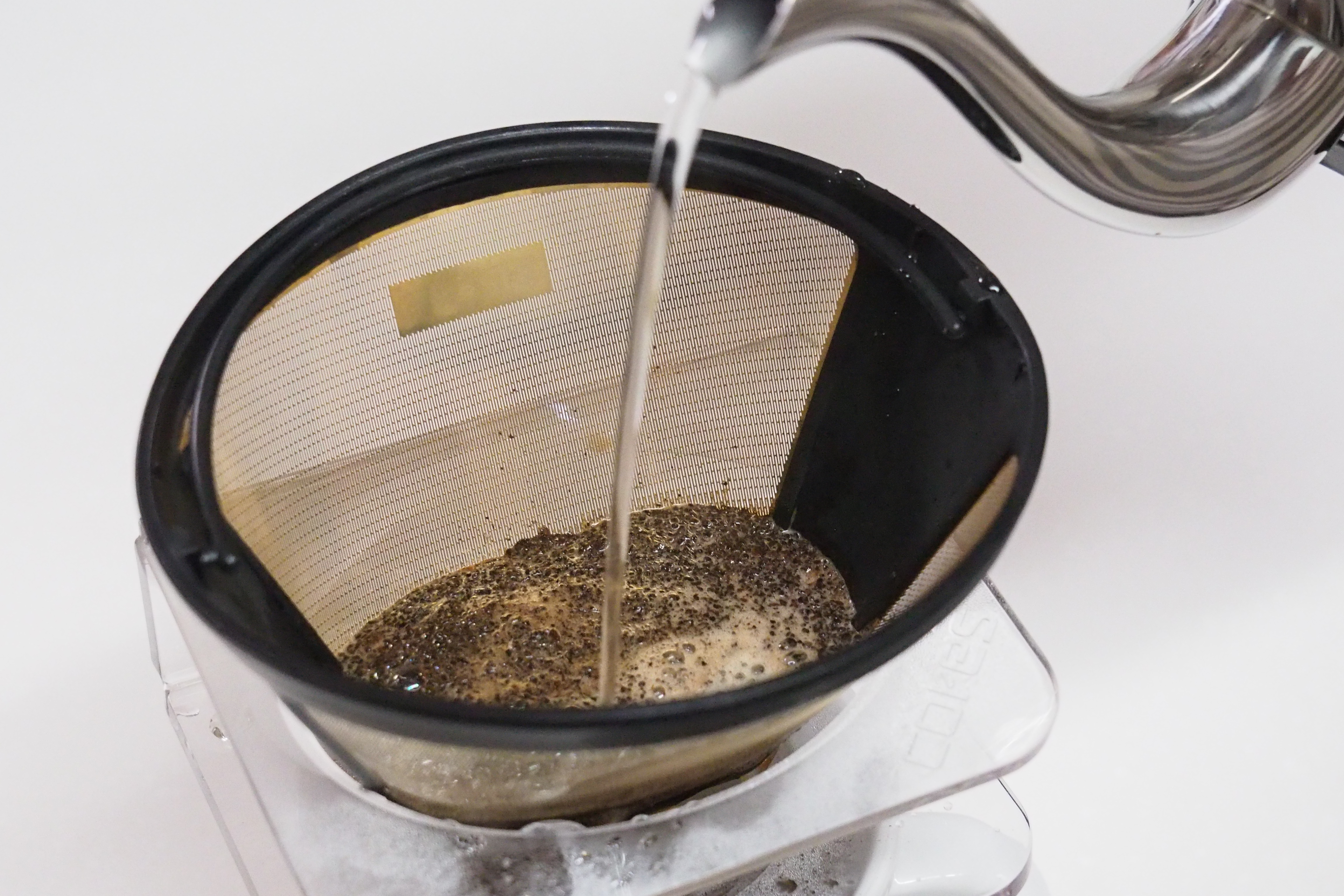 フィルターは定番のペーパーフィルターでもいいが、ちょっとコク豊かで、豆の持つ脂分も抽出したいなら、メッシュフィルターを使いたい。ここではラッセルホブスとあわせて大石アンドアソシエイツが取り扱っているコレスの金メッキフィルターを使った。