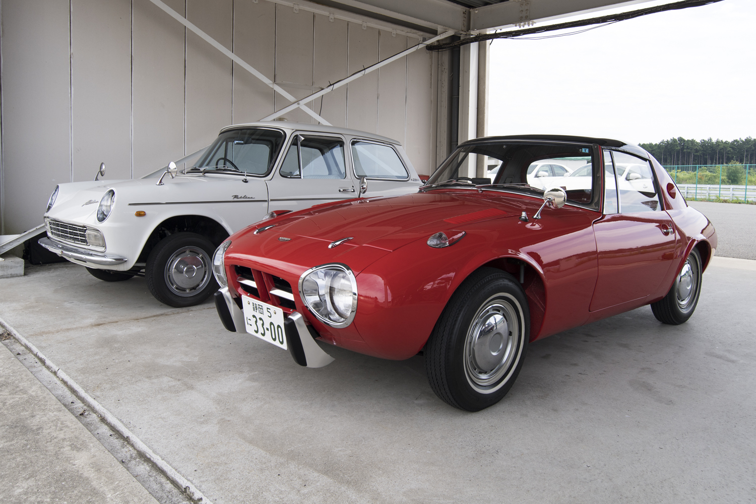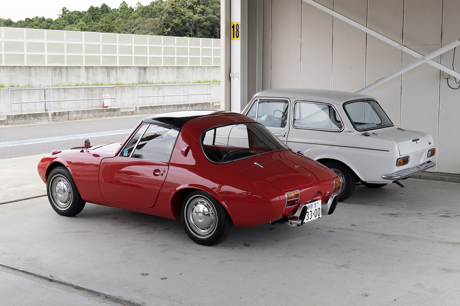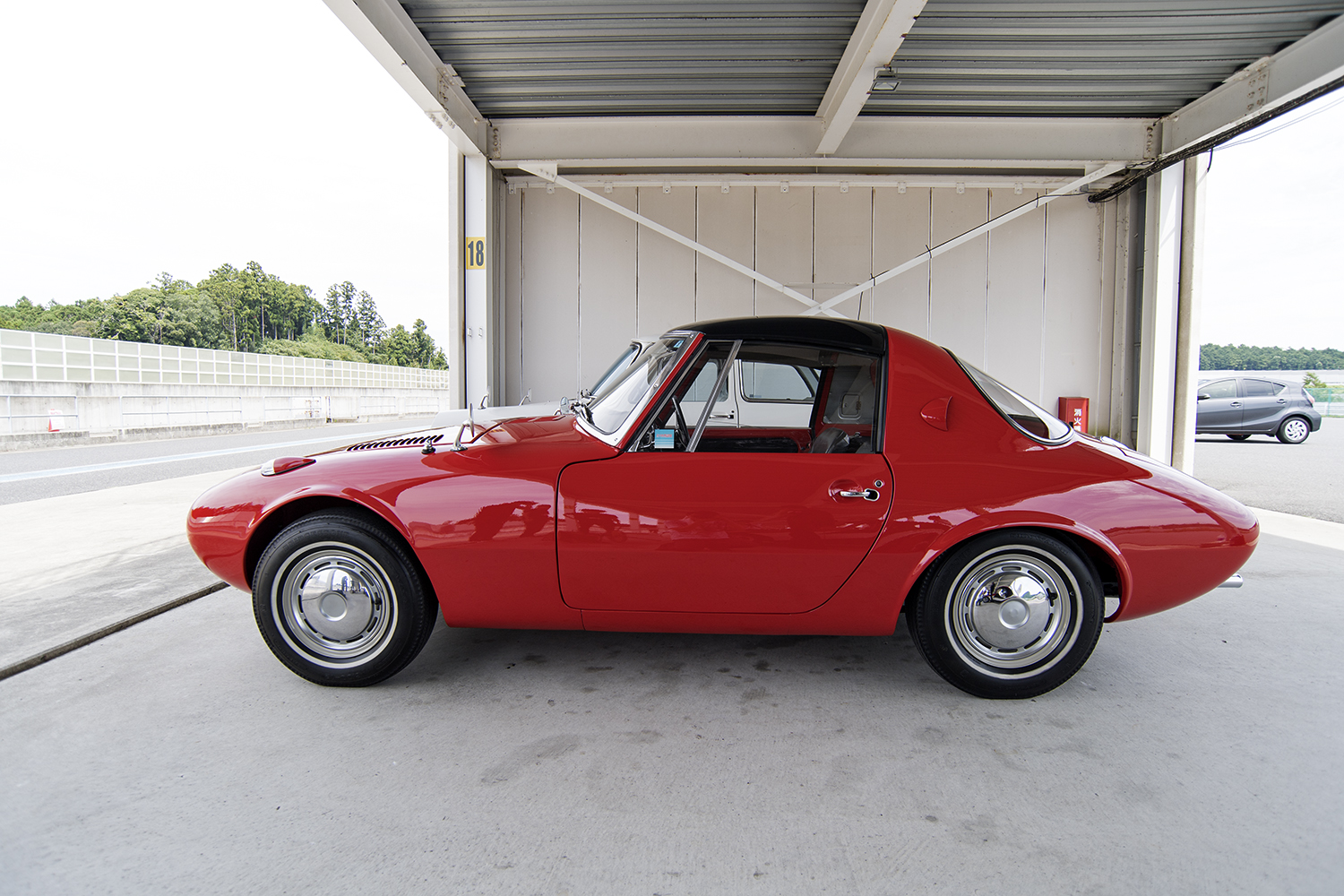 ’65年に登場したスポーツ800は、パブリカのメカニズムを流用しつつ、空力特性に優れるふたり乗りボディを採用したコンパクトなスポーツカー。ボディサイズは全長3580mm、全幅1465mmと、ほぼ現在の軽自動車と同等の大きさです。