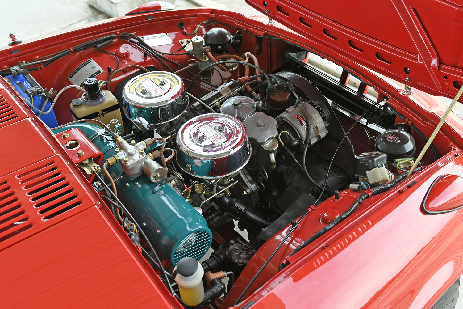 搭載されるエンジンは、UP20型パブリカに先駆けて搭載された、排気量790ccの2U型水平対向2気筒ですが、こちらはツインキャブレターを装備し、最高出力は45馬力を発生します。