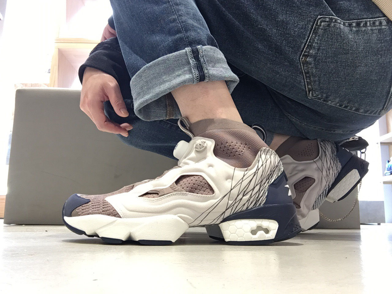 往年の名作もニットアッパーにアレンジすることで、かなり今っぽい雰囲気へと進化しています! しかしポンプシステムならではの高いフィッティングはもちろん健在。30年以上も前にこのデザインのベースと履き心地が完成していたとは、改めて驚きです!