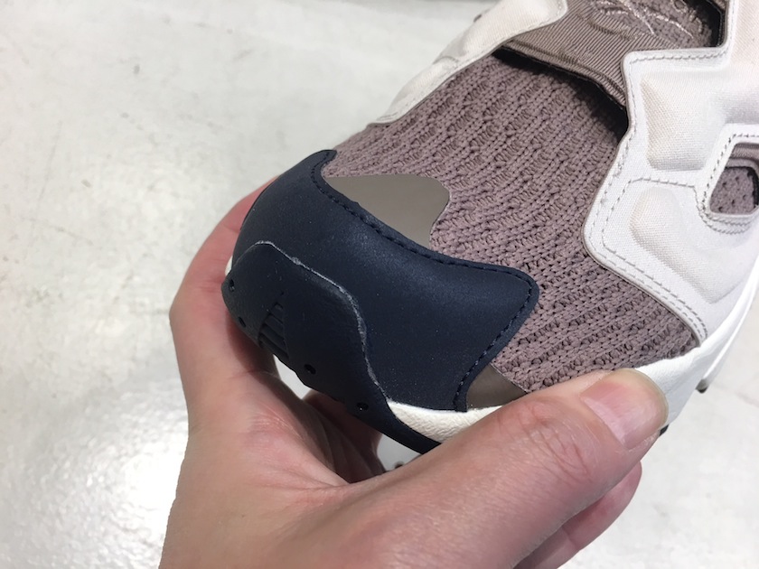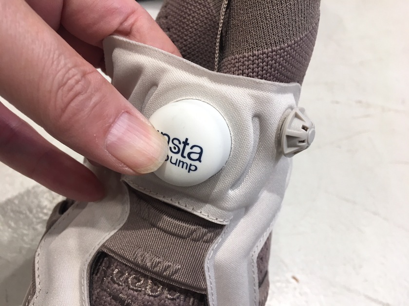 ポンプフューリーでマストなディテールと言えばコレですね! シュータンの中央に配されたボタンをシュコシュコ押す事で、アッパーを覆ったポンプチェンバーに空気が送り込まれ、好みのフィッティングに調節できます。