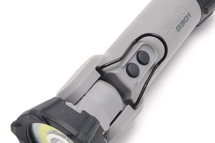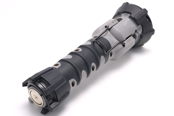 特徴的な照射に加え、ボディもタジマらしい独創性にあふれています。ワークライトに必須のテールマグネット。かなり強力で、ばちん!と張り付きます。