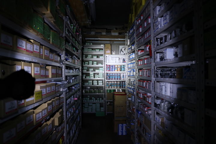 ワイド光、HIGH。公称300ルーメンですが、スポット照射とどっちが明るいとは言いづらい感じです。こういった奥行きがある場所よりも、壁や床などの平面への照射に向きます。