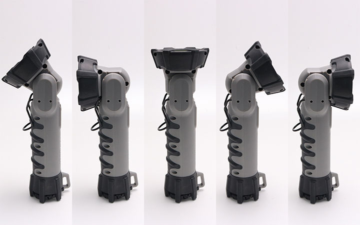 ヘッド部は15度ずつ13ポジション、180度振ることができます。ボディサイズに比べるとイメージよりも軽い力で、しかし確実にコキコキと動きます。さまざまな場所に貼り付けたうえで、好みの場所に向けることができ、とても便利。この利便性は固定式のL字型ライトにはないものです。