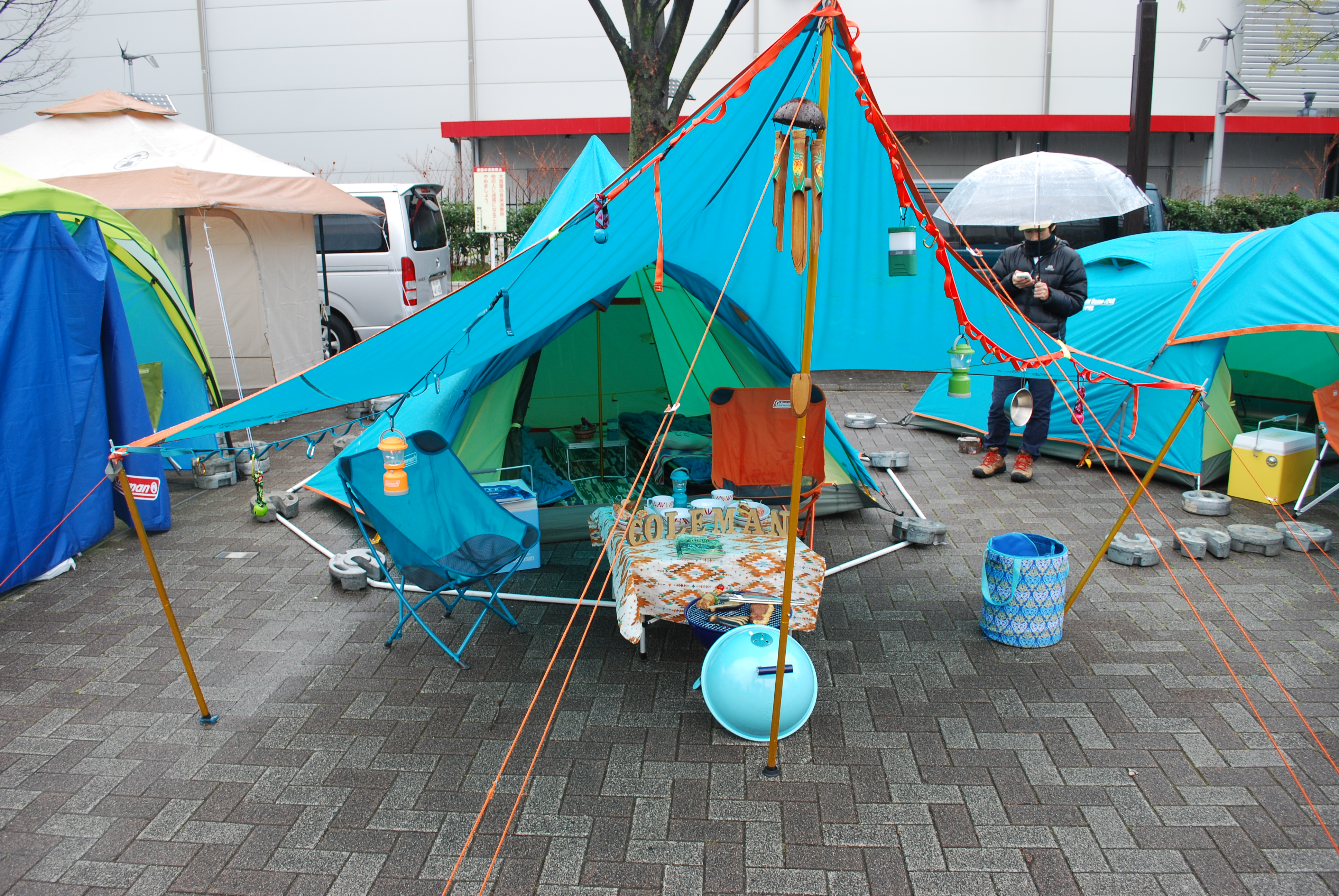 上の写真は2015年4月に代々木公園で行われた『アウトドアデイジャパン』でコールマンが展示していた「ウインズライトシリーズ」とロースタイルテーブルやチェアなど。これらはすぐ横に展示されていたスズキ「ハスラー」に、後席を倒さず積めるとのこと。