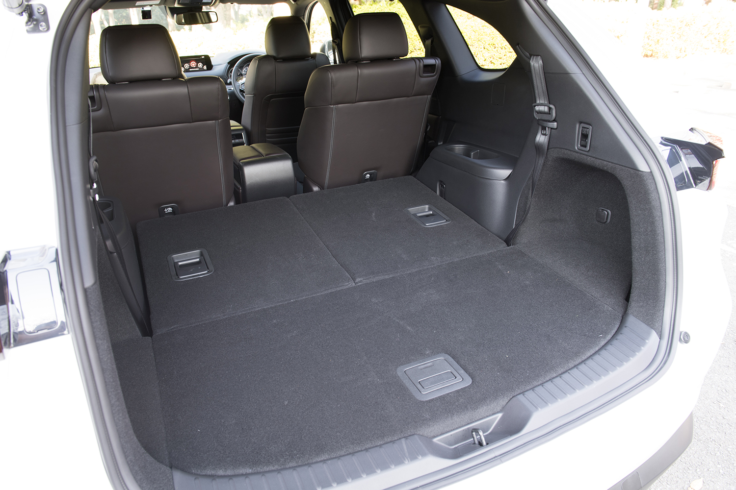 実際、2930mmというホイールベースはもちろん、プラットフォームや足まわりなども、CX-9をベースに最適化を図ったもの。決して、CX-5の設計にゆとりがないわけではありませんが、“プラス2名”分の荷重増加や、厳しさを増す安全面への対応を考えると、CX-9ベースの方がよりマージンを確保しやすかったのでしょう。