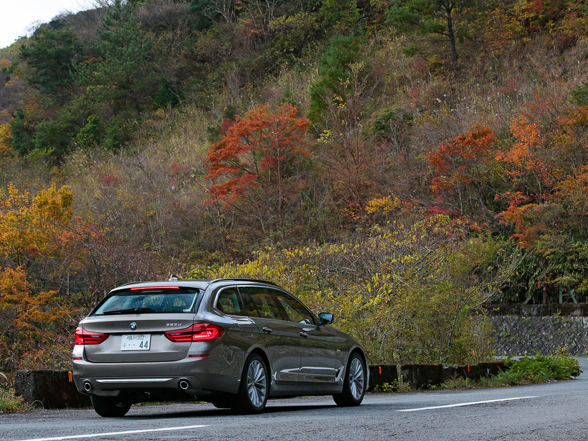 プレミアムブランドらしい、素晴らしいドライブフィールを誇る5シリーズ ツーリングはワゴンとしても優秀で、グレードを問わず、リアサスペンションにはエアスプリングが使われます。そのため、空荷でもむやみに硬い乗り心地にはなりません。今回は試せませんでしたが、フル乗車時に荷室を満載という状態では、エアが自重で圧縮されて相応に硬くなり、凹凸の厳しい路面でも、ぶざまにボトミングするようなことはないはず。