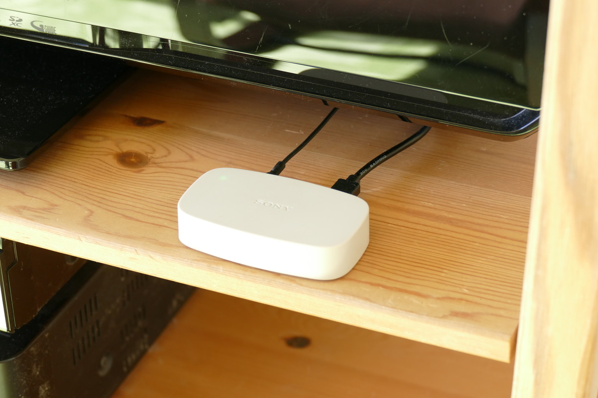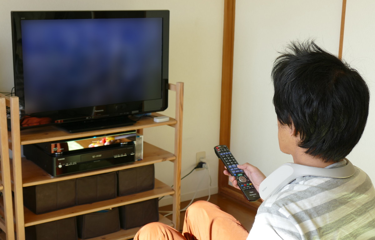 テレビ画面の前から気軽に離れられるし、ほかのことしてもダラダラした姿勢でもいい。テレビを気楽に見ている日常の延長線上で使える点が、肩のせスピーカーの長所のひとつと言えます。
