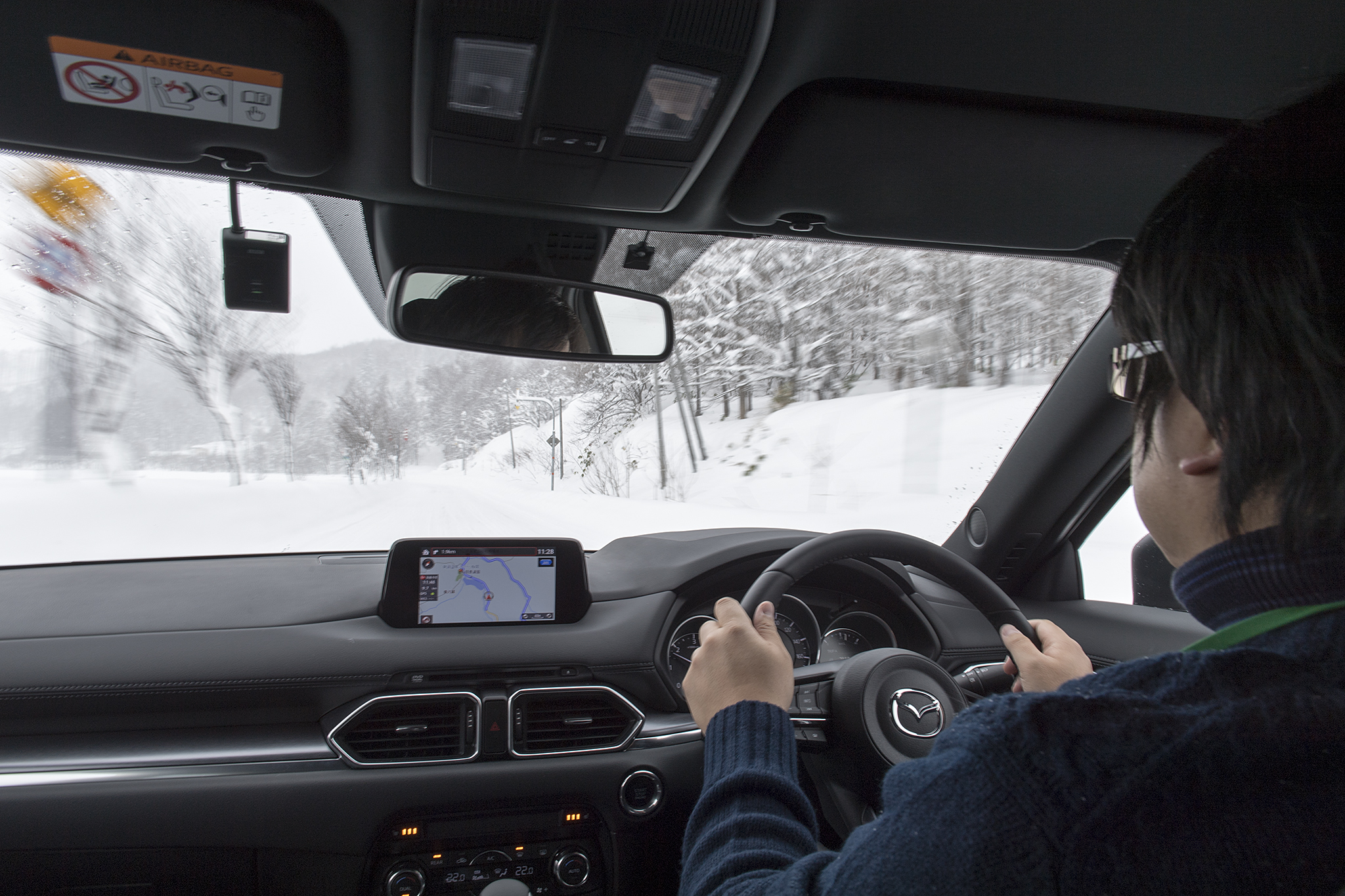 当日は多彩なプログラムが用意されていましたが、その中のCX-8公道試乗は、個人的には非常に興味がありつつも、実は腰が引けていた、というのが本音です。というのも、本格的な雪道は今シーズン初めてですし、何しろ相手は、車重1.9トンというミドルクラスのSUV。やはり相応の緊張感が伴います。