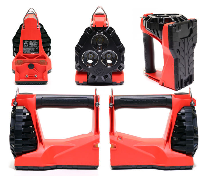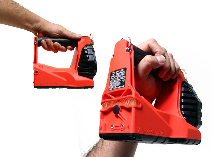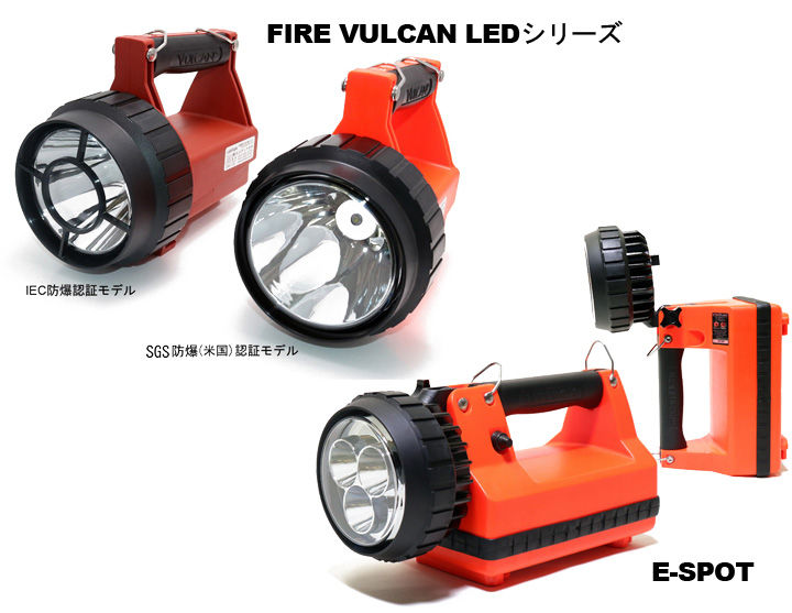 この前後にチルトするヘッドの動きはライトボックスシリーズのE-SPOTと近いものがあります。VULCAN180はE-SPOTの後継になるそうです。つまり、これまでシールド鉛バッテリーを使用していた重たい充電池を軽量なリチウムイオン充電池に変更し、LEDをハイルーメンなものに載せ換えたものが今回のVULCAN180の正体です。ちなみに、ファイアーバルカンLEDは米国防爆、IEC防爆ともに継続品となります。