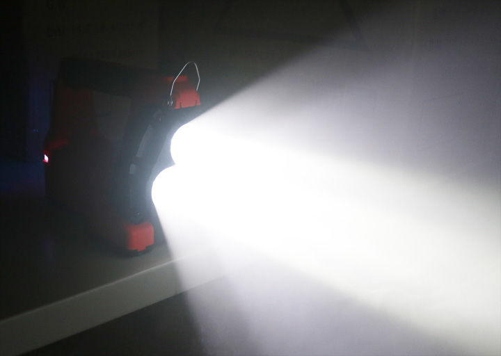 明るい中心光とワイドな周辺光。どちらも過不足が無く非常に素直な配光です。スポット強めの1200ルーメンの配光は遠方への照射を可能にしており、充分に明るい周辺光は室内などの閉鎖された空間を広く照らせます。光源が3灯に分散しているので、1灯あたりに負荷が少なく効率的に発光し連続点灯が可能です。ランタイムもHiモードで約4時間は充分な明るさを維持して点灯します。Lowモードの350ルーメンにすれば約12時間のロングランタイムが可能です。頻繁な充電が困難な災害救助現場などでその強いスタミナを発揮します。