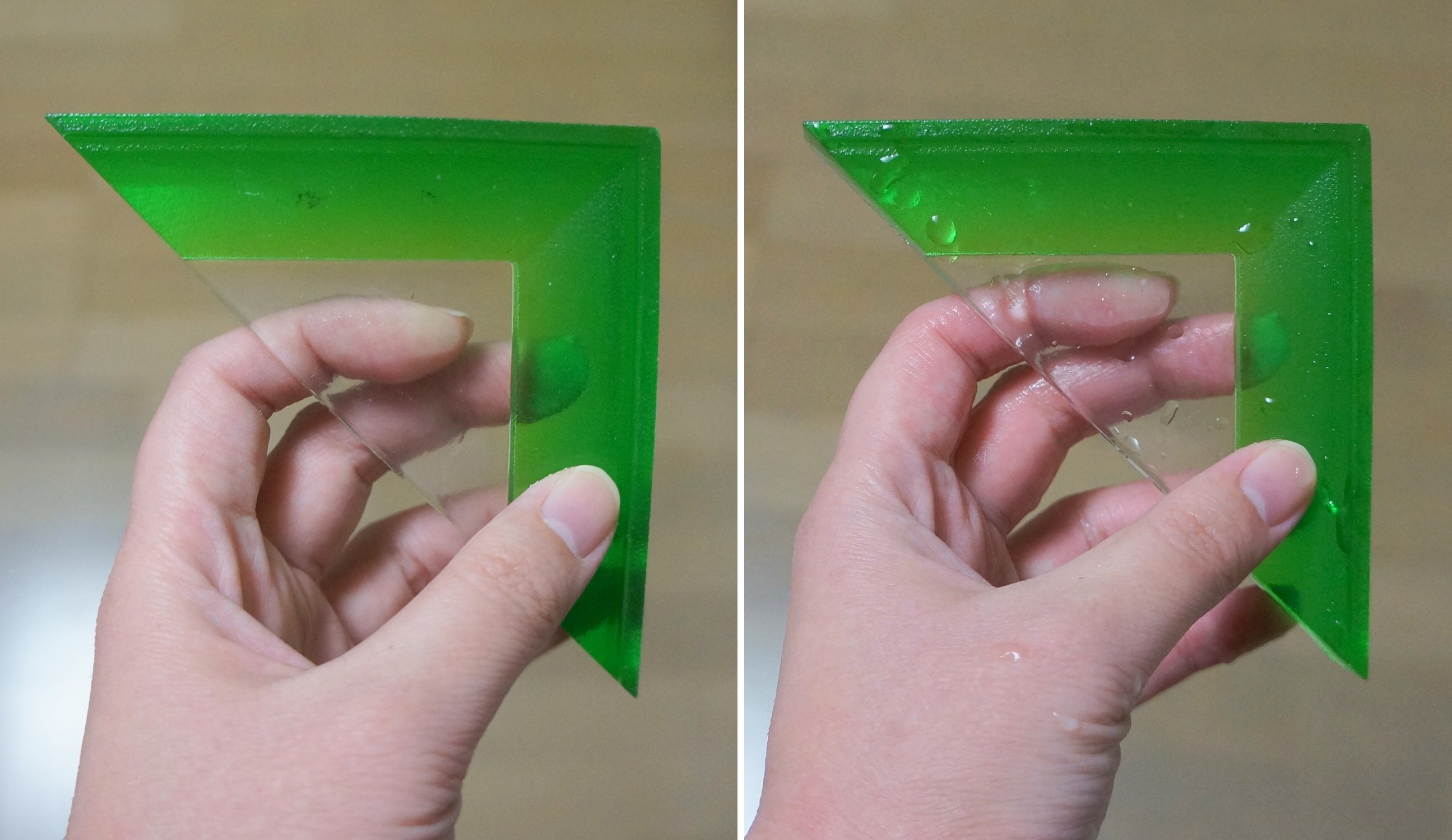 今回紹介する「ジェルのカドフレーム」は、その粘着性を生かした製品です。壁や窓など好きな場所に貼り付けるだけで、即席の"額縁”を作れます。