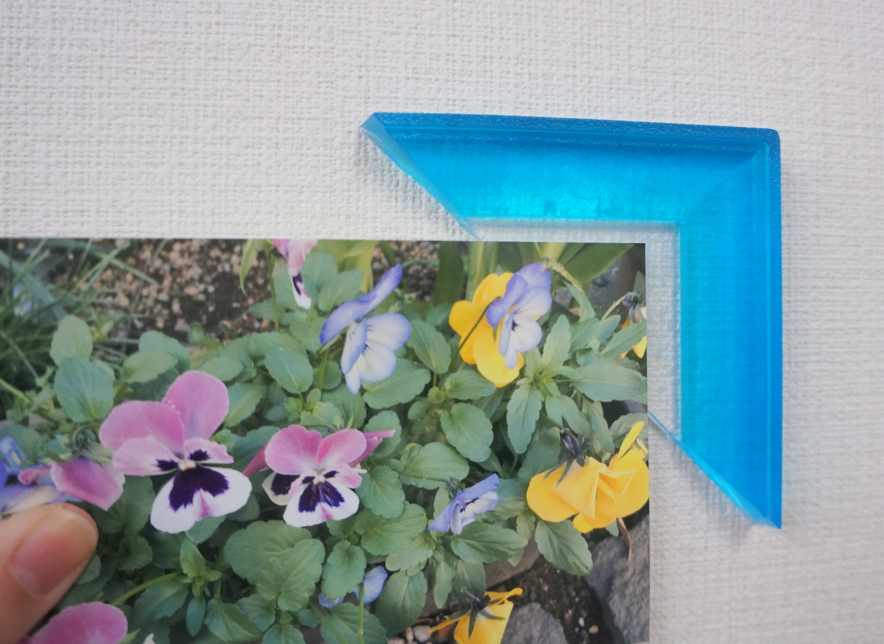 ▲フレームの直角の部分に写真の角を合わせる