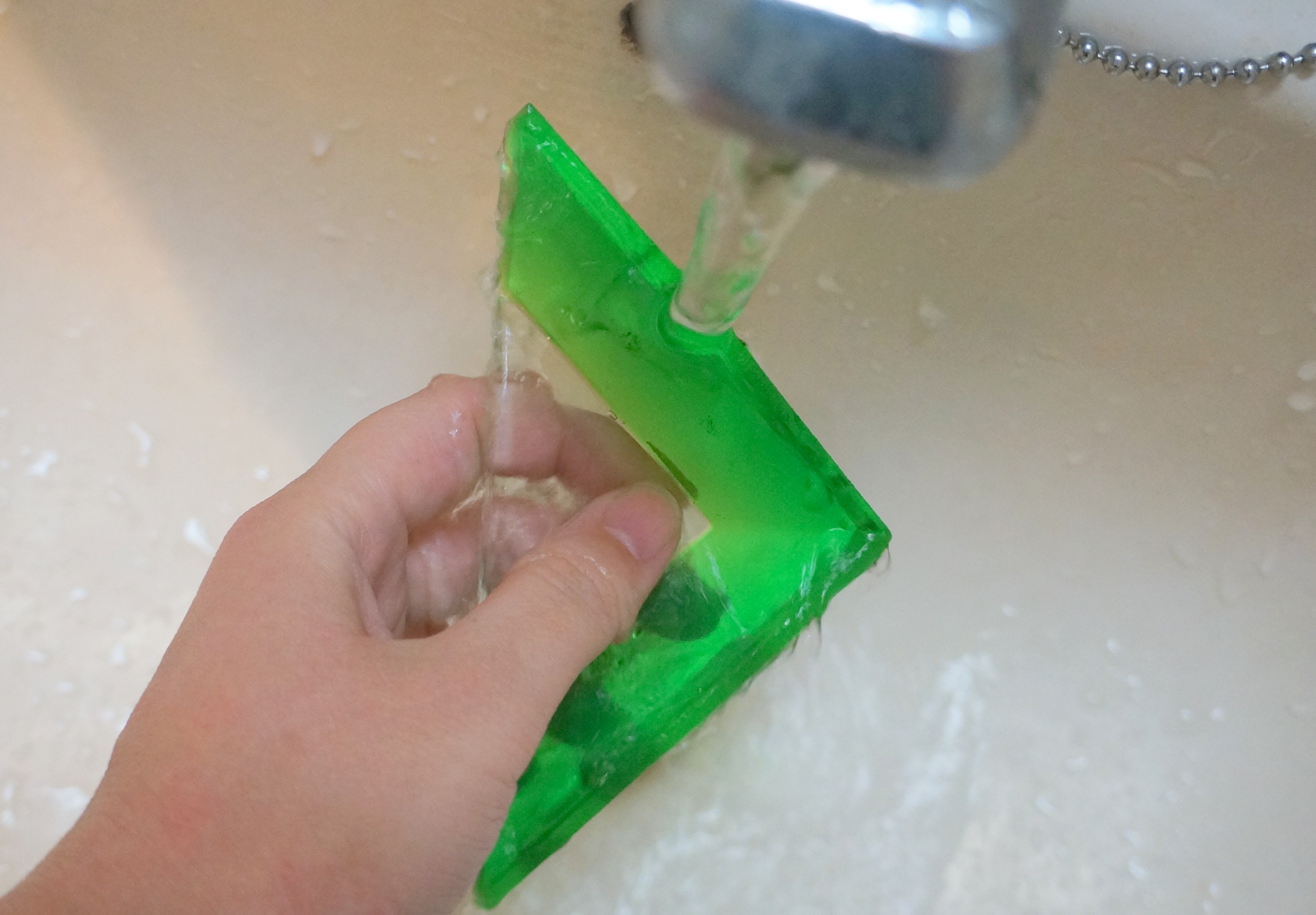 下が水洗い前と水洗い後の比較写真。洗う前に目立っていた汚れやほこりを、だいぶ落とせました。ジェル素材なので確かに汚れは付きやすいですが、水洗いである程度の汚れは落とせると思えば、あまり神経質になる必要はありません。