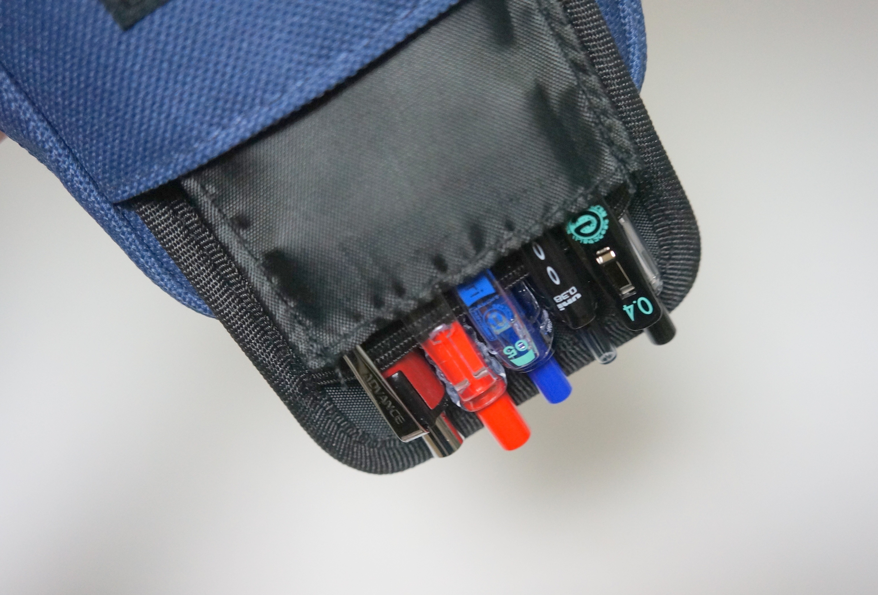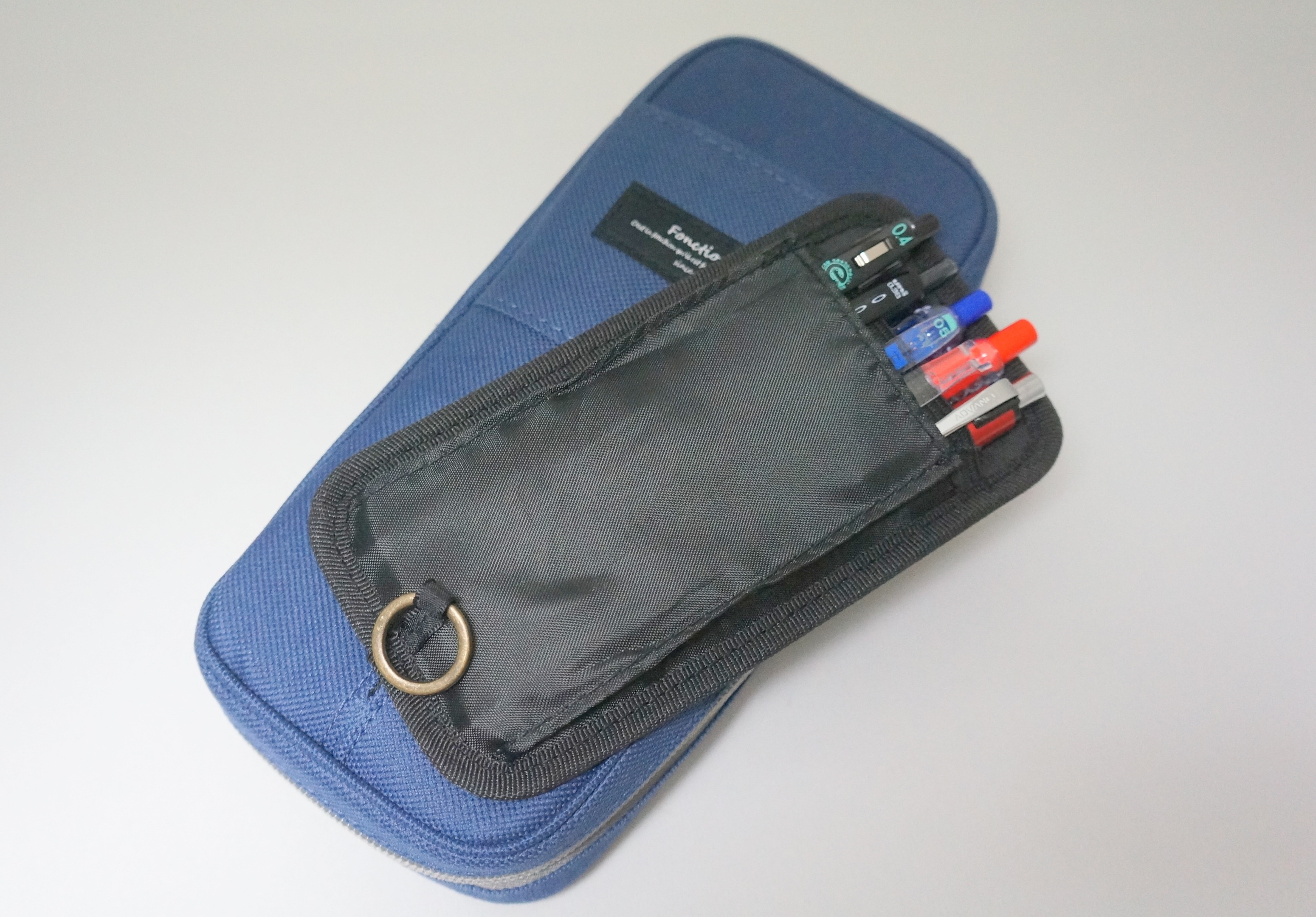 第二のペンケースですが、ポケットの外に出ている輪っかをしまえば、取り外しが可能。つまり、一軍ペンを丸ごと取り外して、ノートやメモ帳と合わせて持ち運ぶ使い方もできるのです。