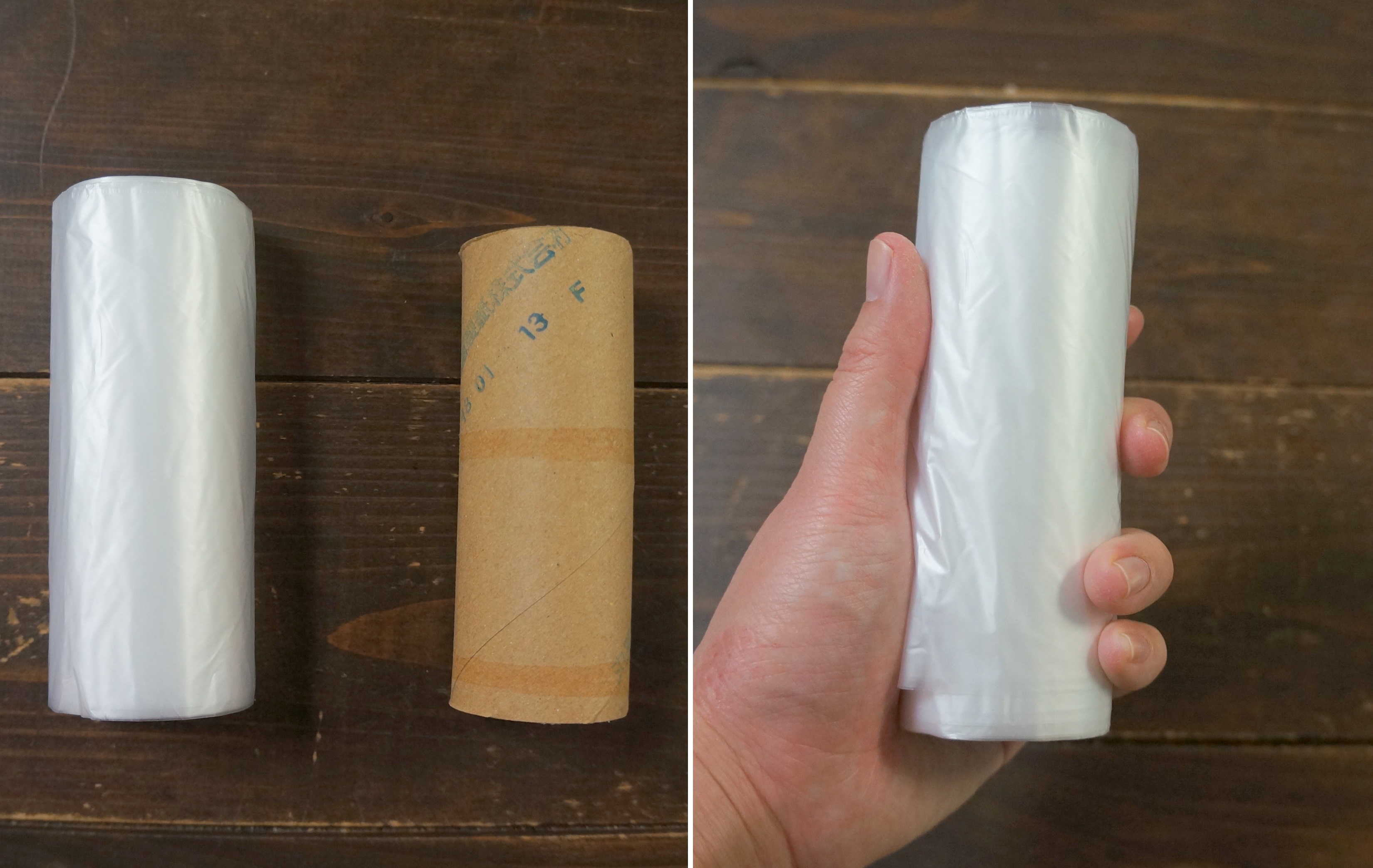 アイデアゴミ袋のトップバッターは、「次が使いやすいゴミ袋」(170円~)です。20枚のゴミ袋がロール状にまとめられたこの製品。ロール本体をゴミ箱に入れ、一枚目のゴミ袋をトイレットペーパーのように引っ張り出して使います。