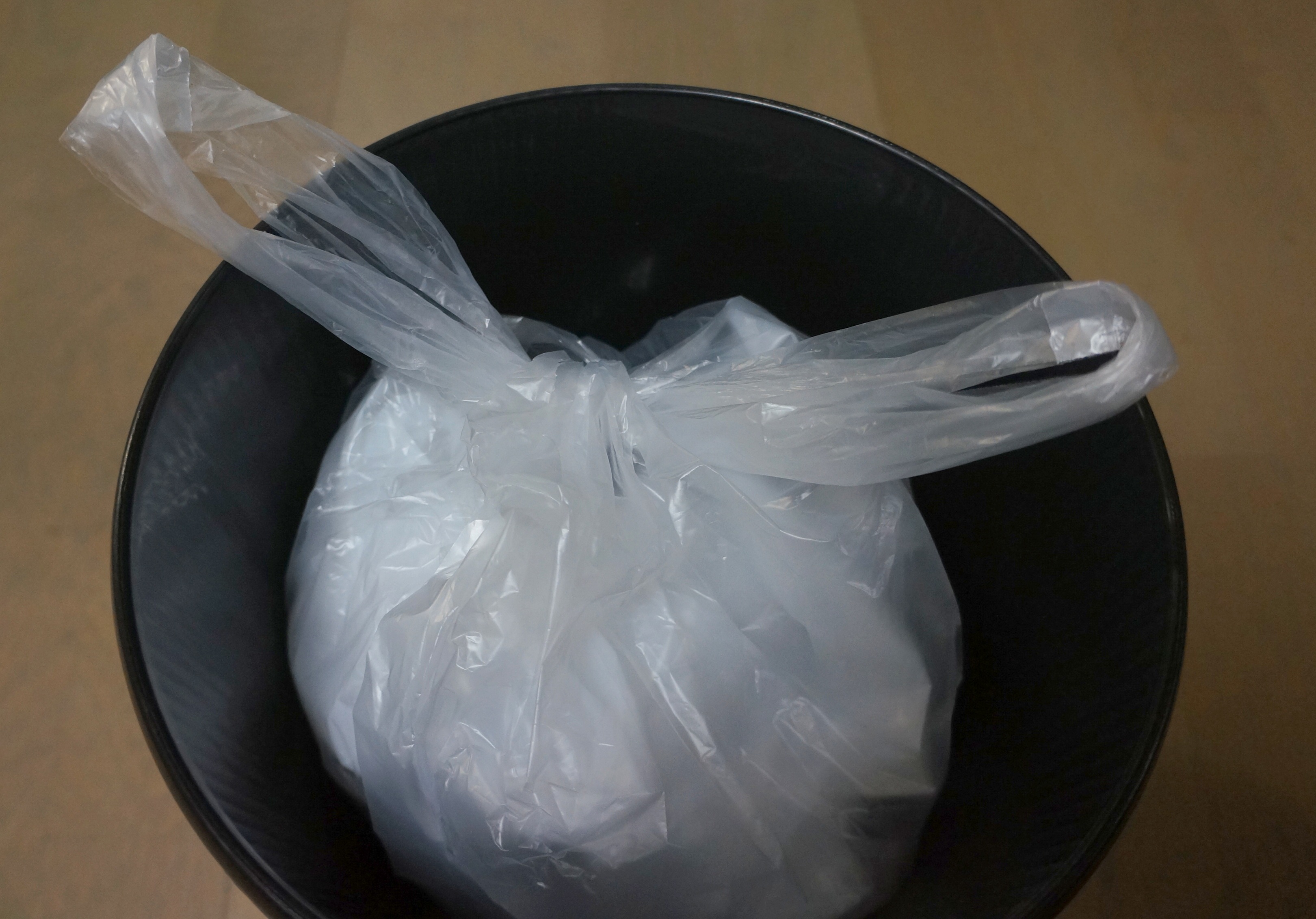 「次が使いやすいゴミ袋」には手さげ袋タイプ(192円)もあります。このタイプの特徴は、ゴミ袋の口を閉じやすいこと。ゴミ袋が満杯になっても、手さげ部分を結べば中身がもれる心配がありません。