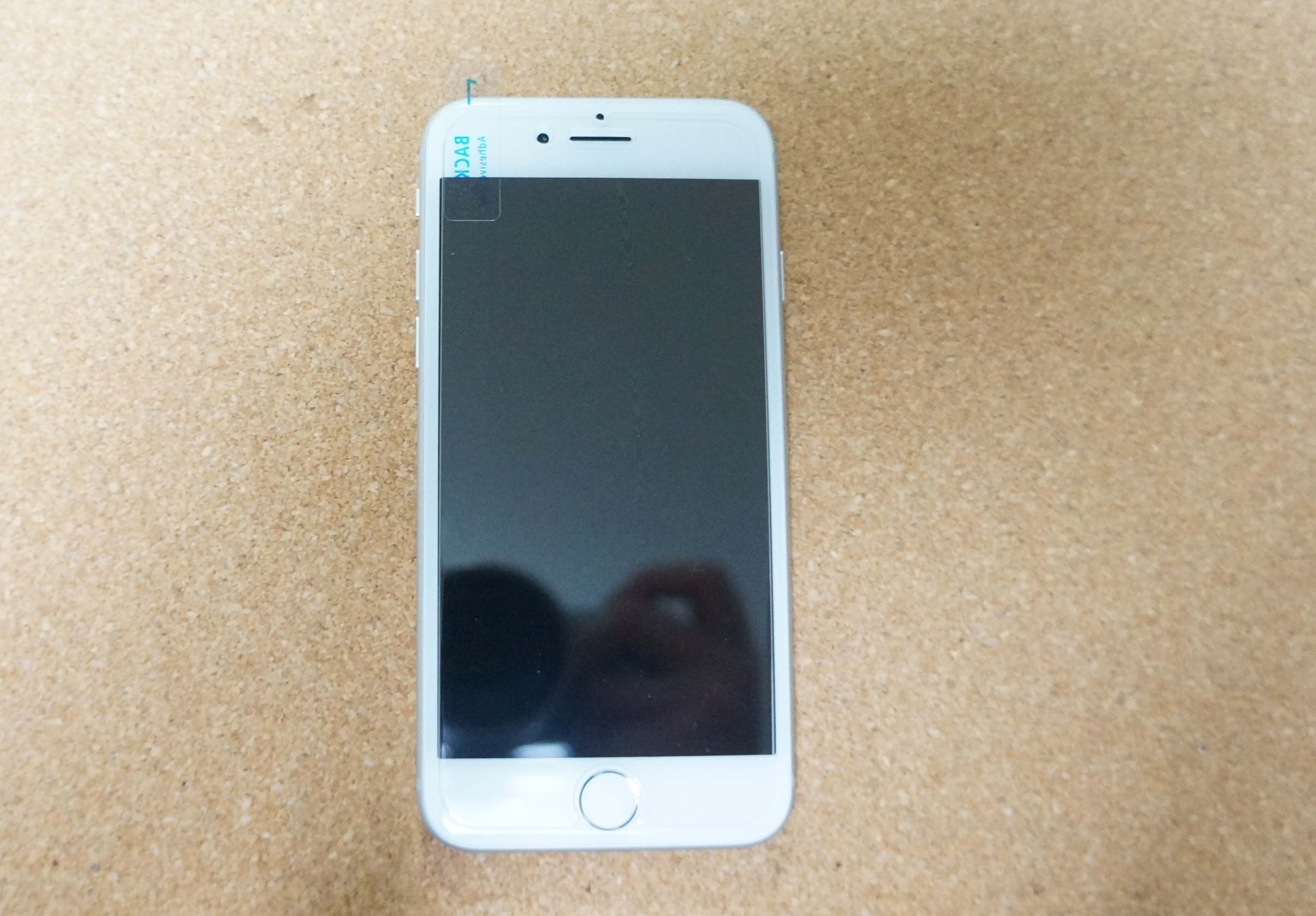 まずは、剥離シートが貼られた状態のフィルムを用意。それをiPhoneの画面の上に置き、フィルムをどの位置に貼ればホームボタンやフロントカメラがきちんとはまるかを確認しましょう。こうすると、実際にフィルムを貼ったあとのイメージが湧きます。