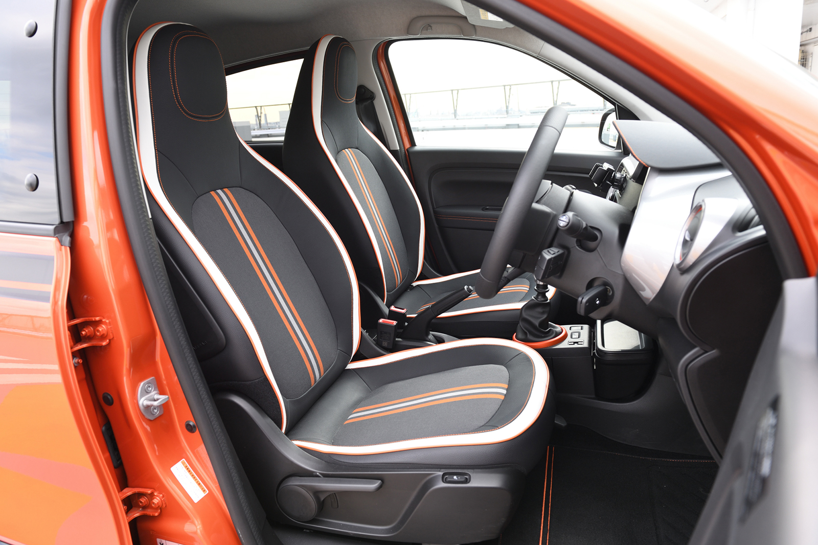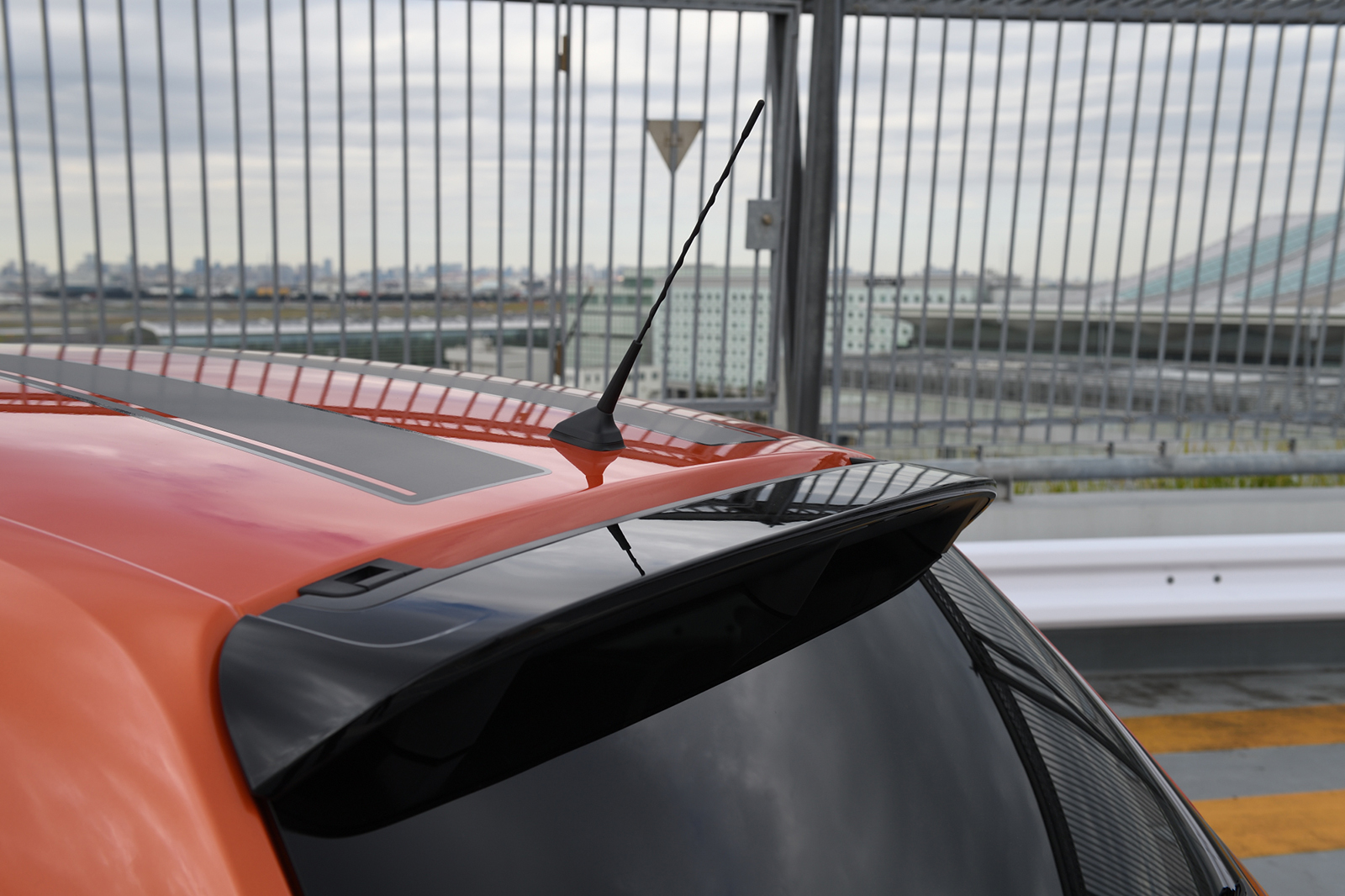 インテリアに目を移すと、オレンジのストライプが入った、レザー調素材とファブリックを用いたシートや、シフトレバーまわりのあしらいなど、コーディネートもGT専用となっています。標準モデルではボディカラーに合わせ、カラフルかつポップな仕立てとなりますが、GTでは要所となる部分にワンポイントで差し色を用いるなど、やや大人っぽいコーディネート。好みもあるとは思いますが、仕様の違いをテクスチャーや色使いでしっかり表現してくる辺りは、相変わらず巧みだなと思います。