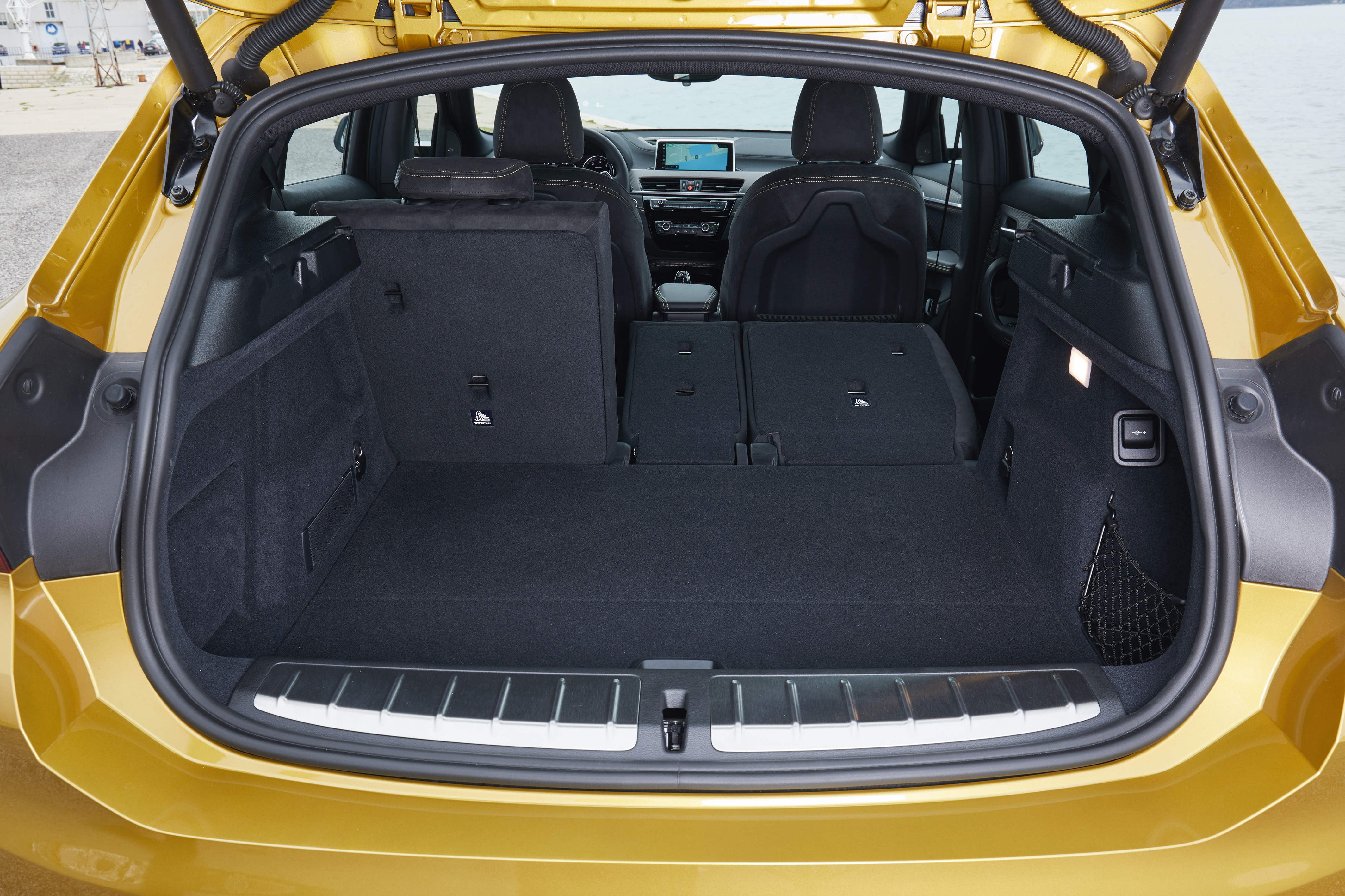 その“法則”から推測できるとおり、X2はX1をベースに仕立てた、コンパクトなクーペスタイルSUV。ですから、ルックスはX1と似ていますが、全高はX1より76mm低い1526mmに抑えられ、日本の立体駐車場にも対応できるサイズになっています。ちなみに、全幅はX2の方が3mm広く(1824mm)、全長は同79mm短く(4360mm)設定されているので、まさにX1を短く、広く、低くしたモデルがX2、という位置づけです。