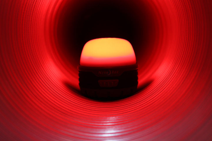 赤色LEDは夜間での夜目の保護で使用されます。真っ暗な部屋で赤色を点灯させ、しばらく目を閉じてから再び目を開くとわずか6ルーメンの赤色灯でも充分に物のカタチや距離感を把握できます。慣れれば歩き回ることもできます。白色光に比べ周囲からも目立ちません。アウトドアでは慣れておきたい色のひとつです。